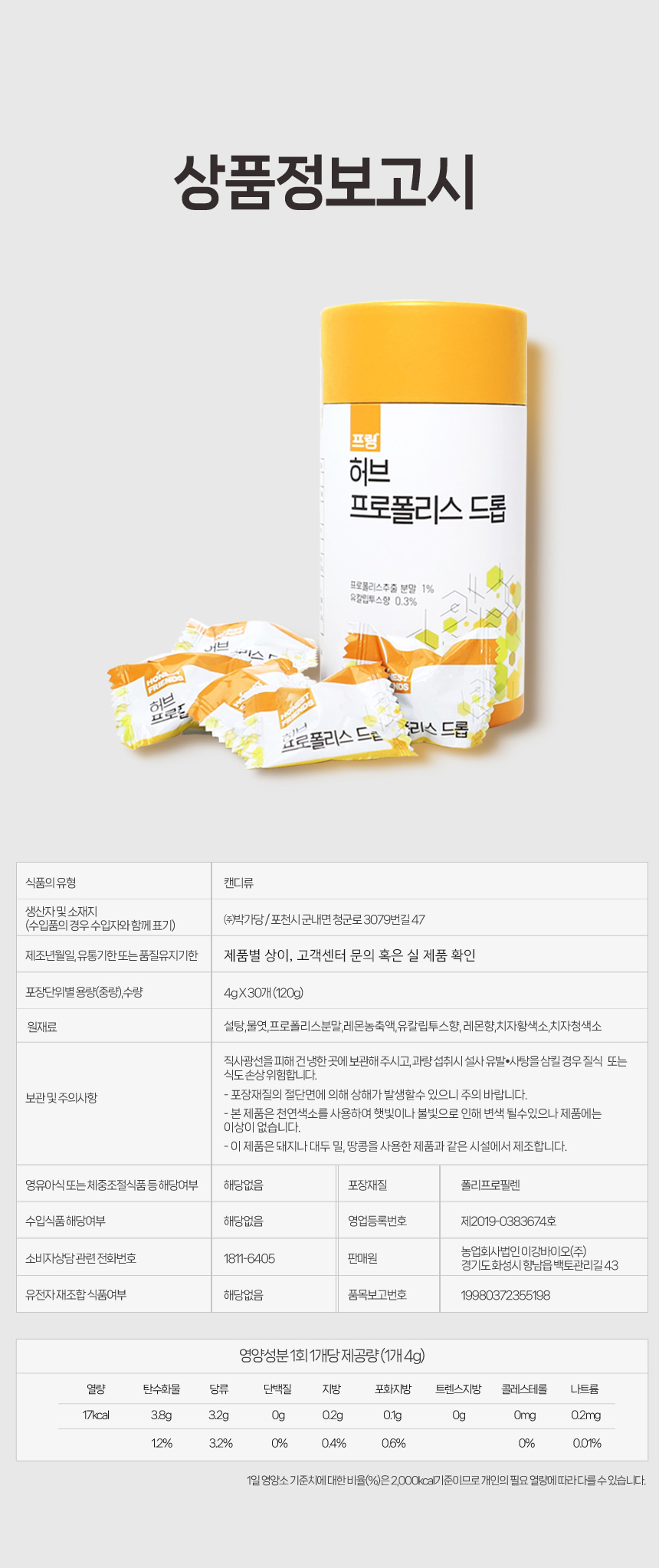 • 허브 프로폴리스 드롭 1통 (캔디 30입)