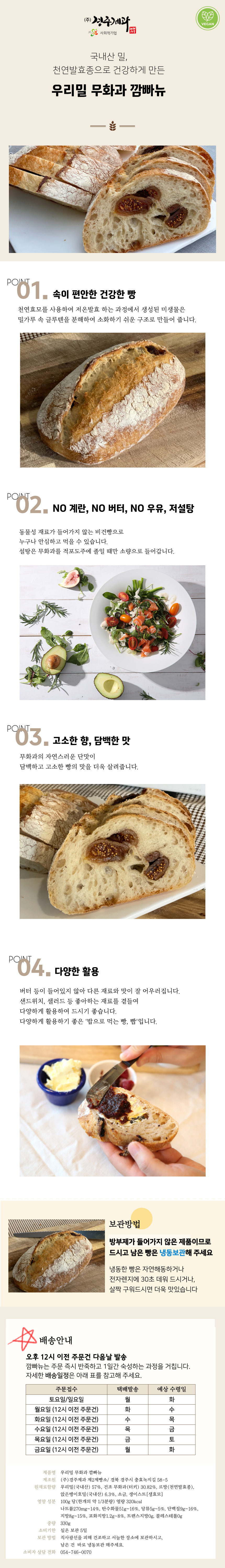 국내산 밀, 천연발효종으로 건강하게 만든, 우리밀 무화과 깜빠뉴
