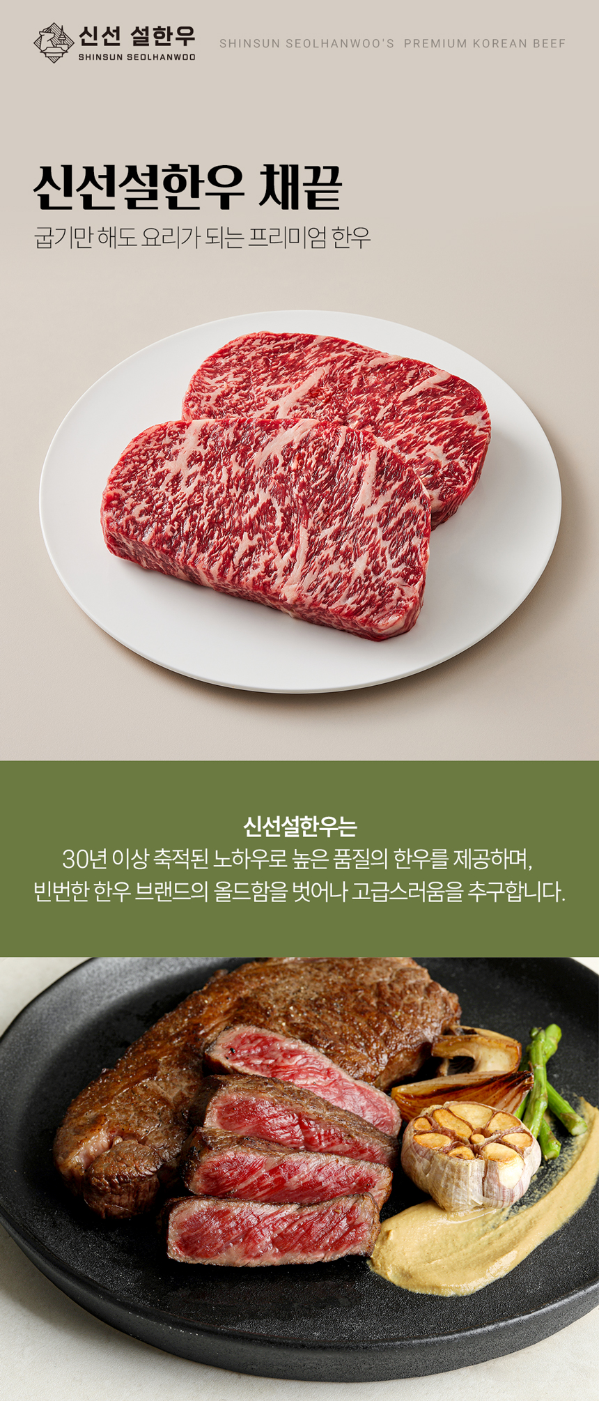 진한 풍미와 식감이 쫄깃한 한우 채끝