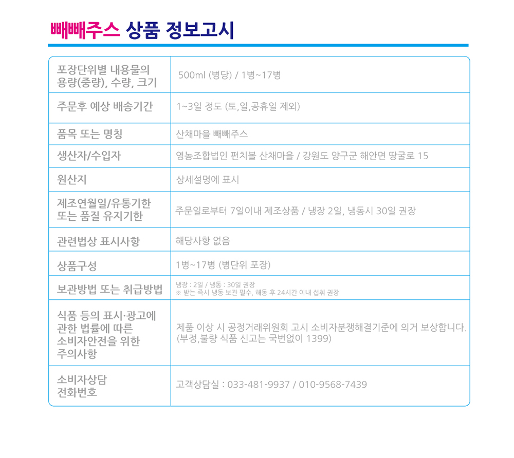 • 양구 펀치볼 빼빼주스 500ml (17병)