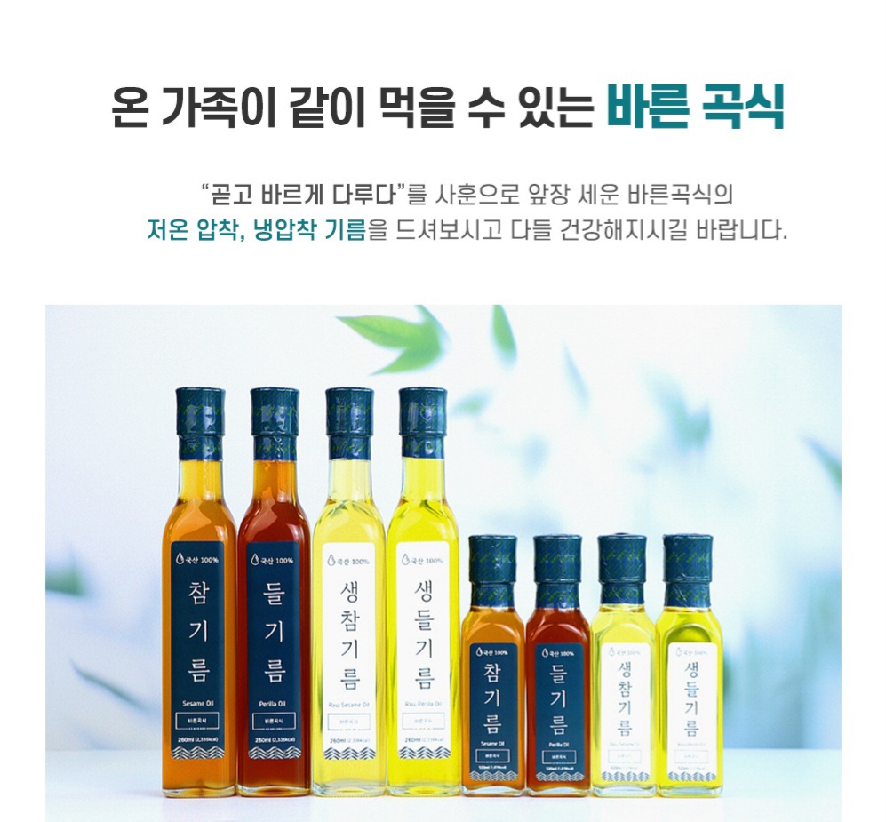 바른곡식 국산 생참기름 냉압착 120ml / 260ml