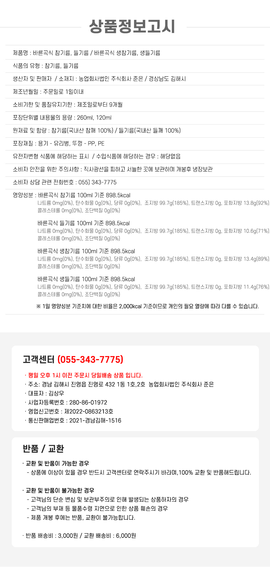 직접 재배한 깨로 신선한 기름을 오후13시 이전 주문 시 당일 착유하여 오늘 출발 합니다.