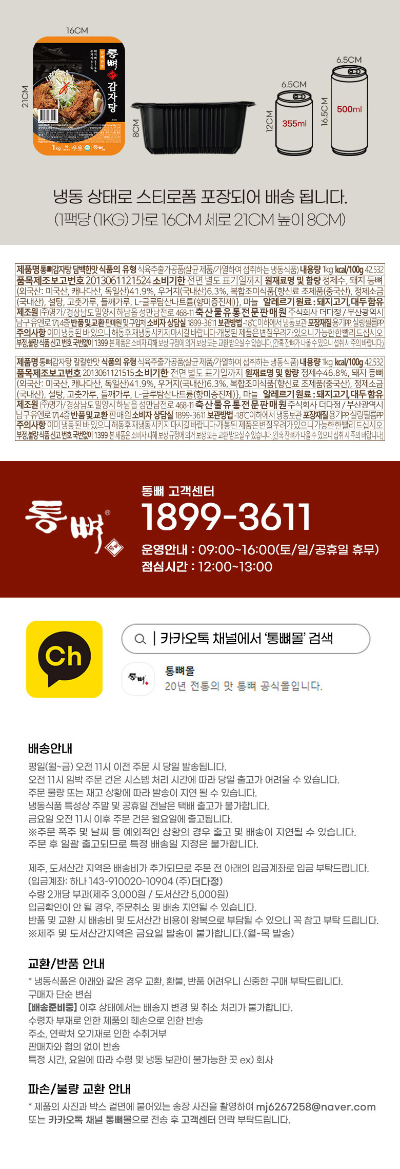 정제수46.8%, 돼지 등뼈(외국산: 미국산,캐나다산, 독일산)41.9%, 우거지(국내산)6.3%, 복합조미식품{향신료 조제품(중국산), 정제소금(국내산), 설탕, 고춧가루, 들깨가루, L-글루탐산나트륨(향미증진제)}, 마늘