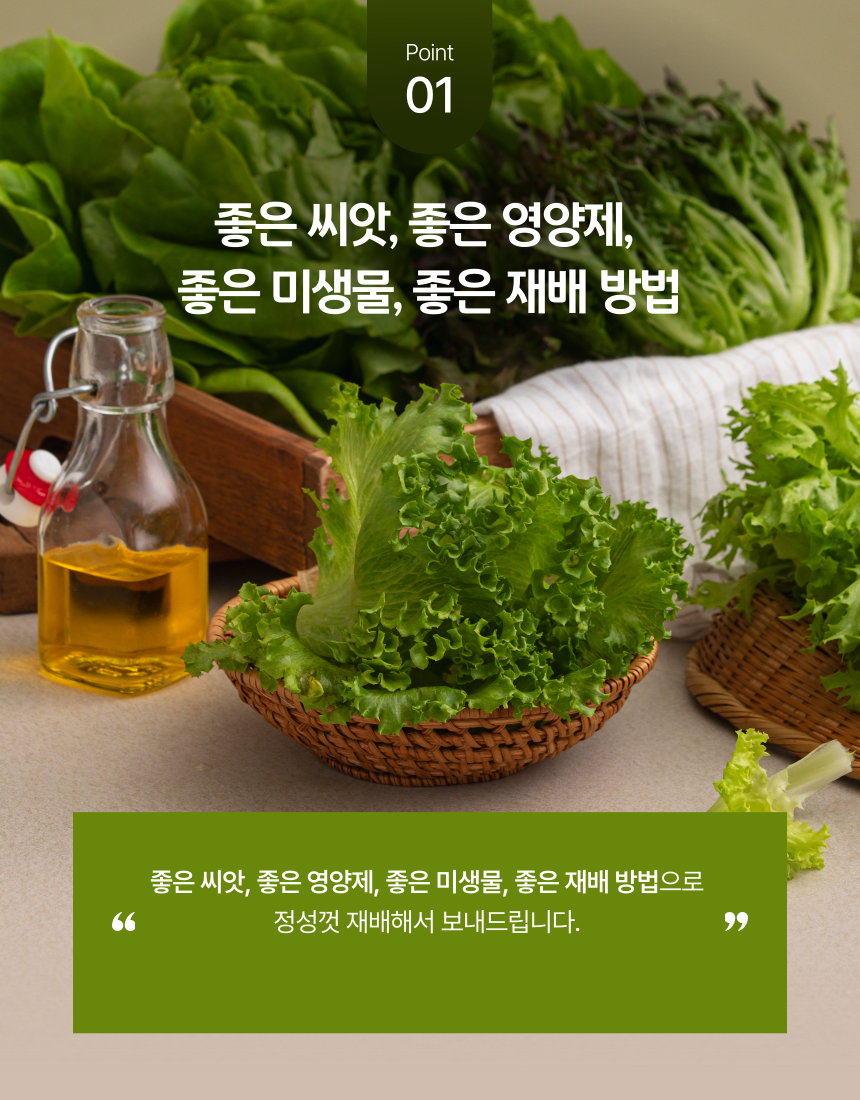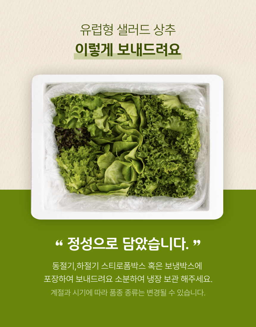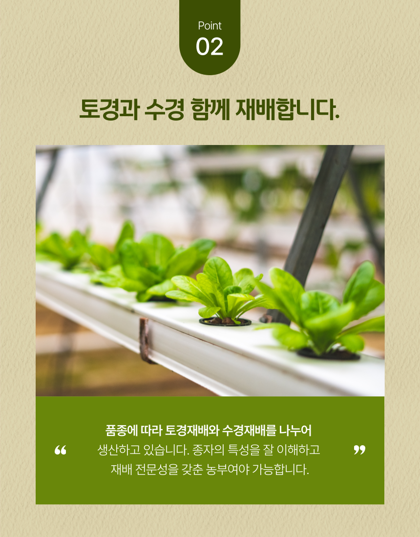 종자전문가가 우수 종자를 선별하여 위생적인 하우스 환경에서 직접 재배한 건강하고 신선한 유럽샐러드상추