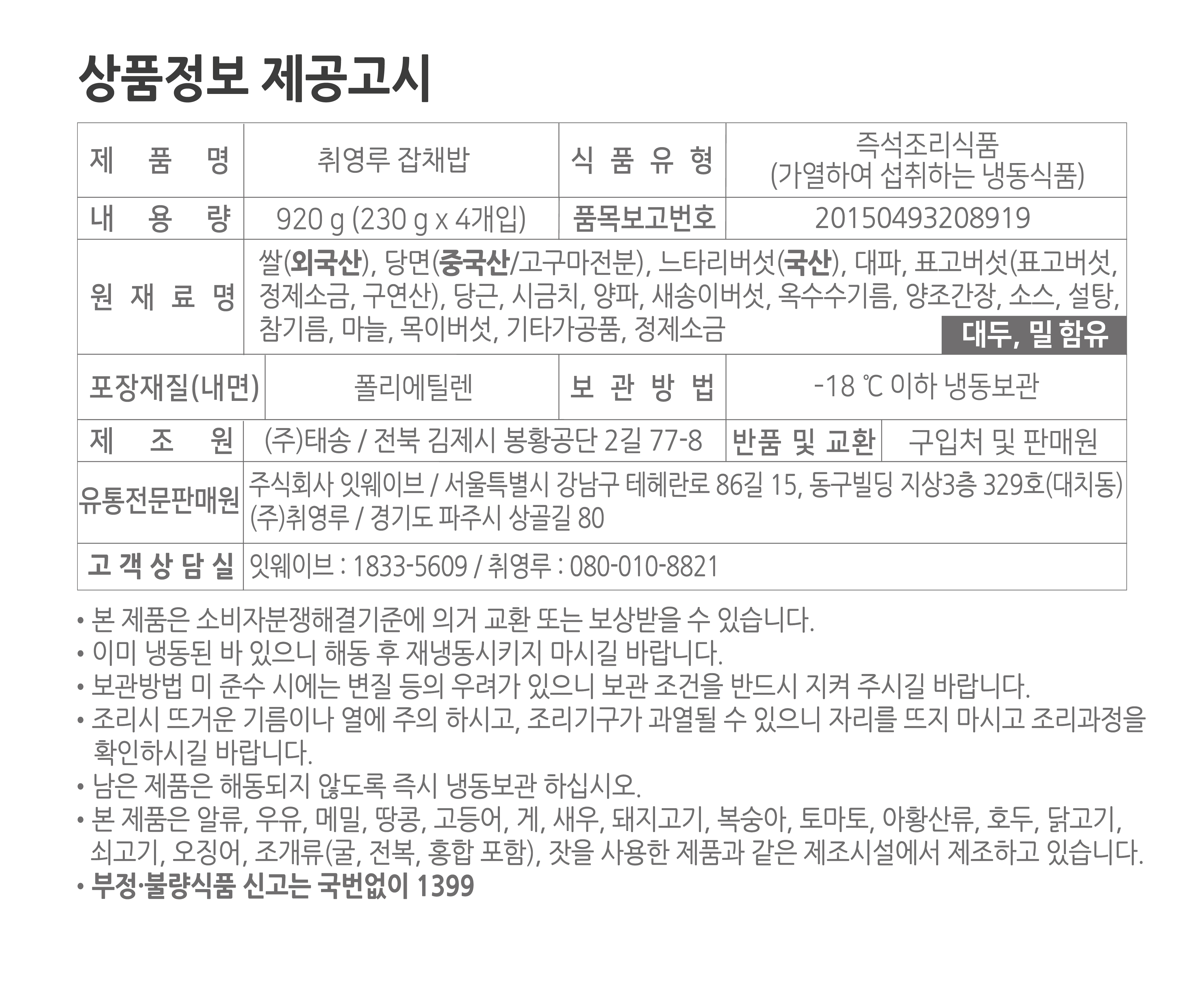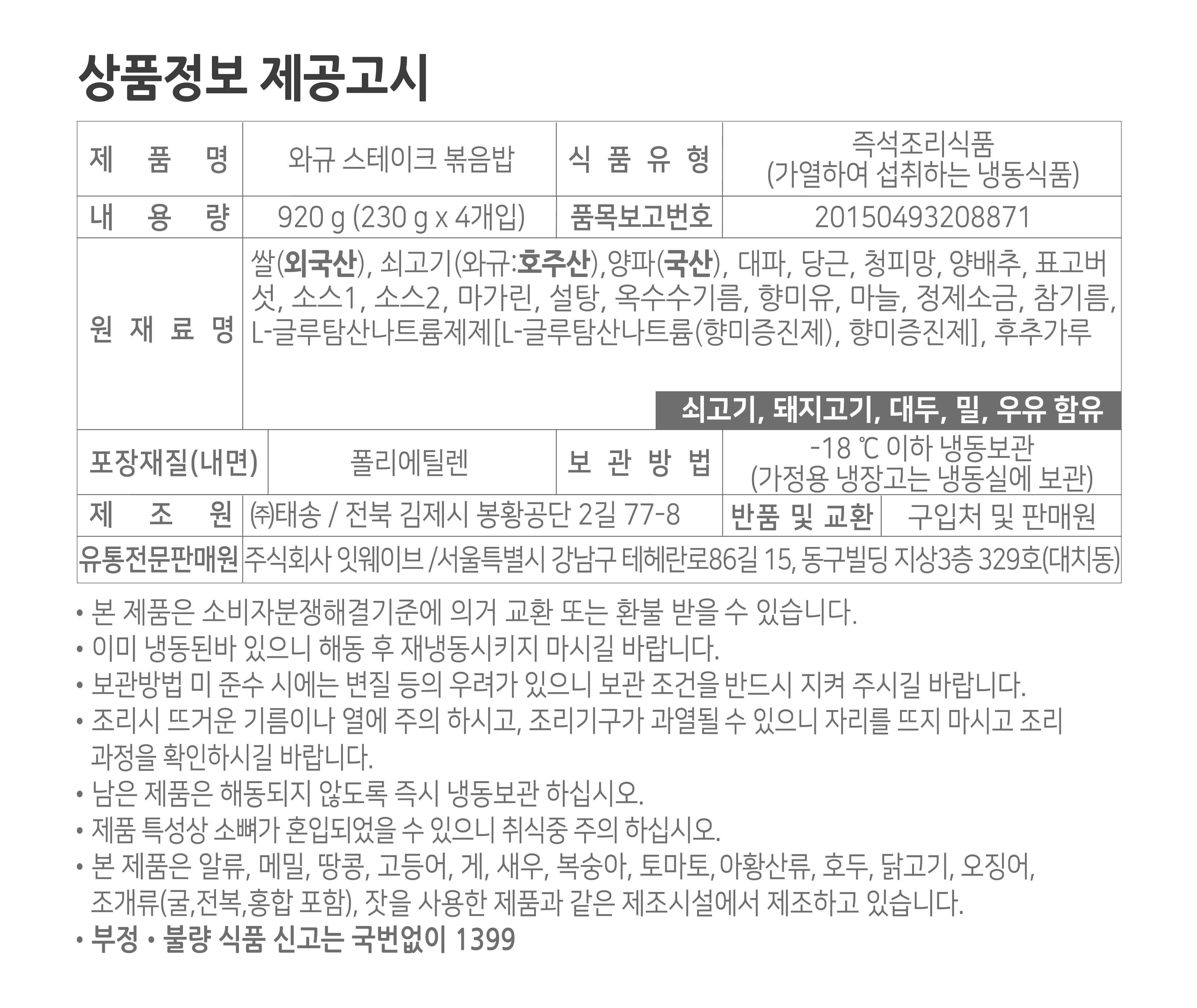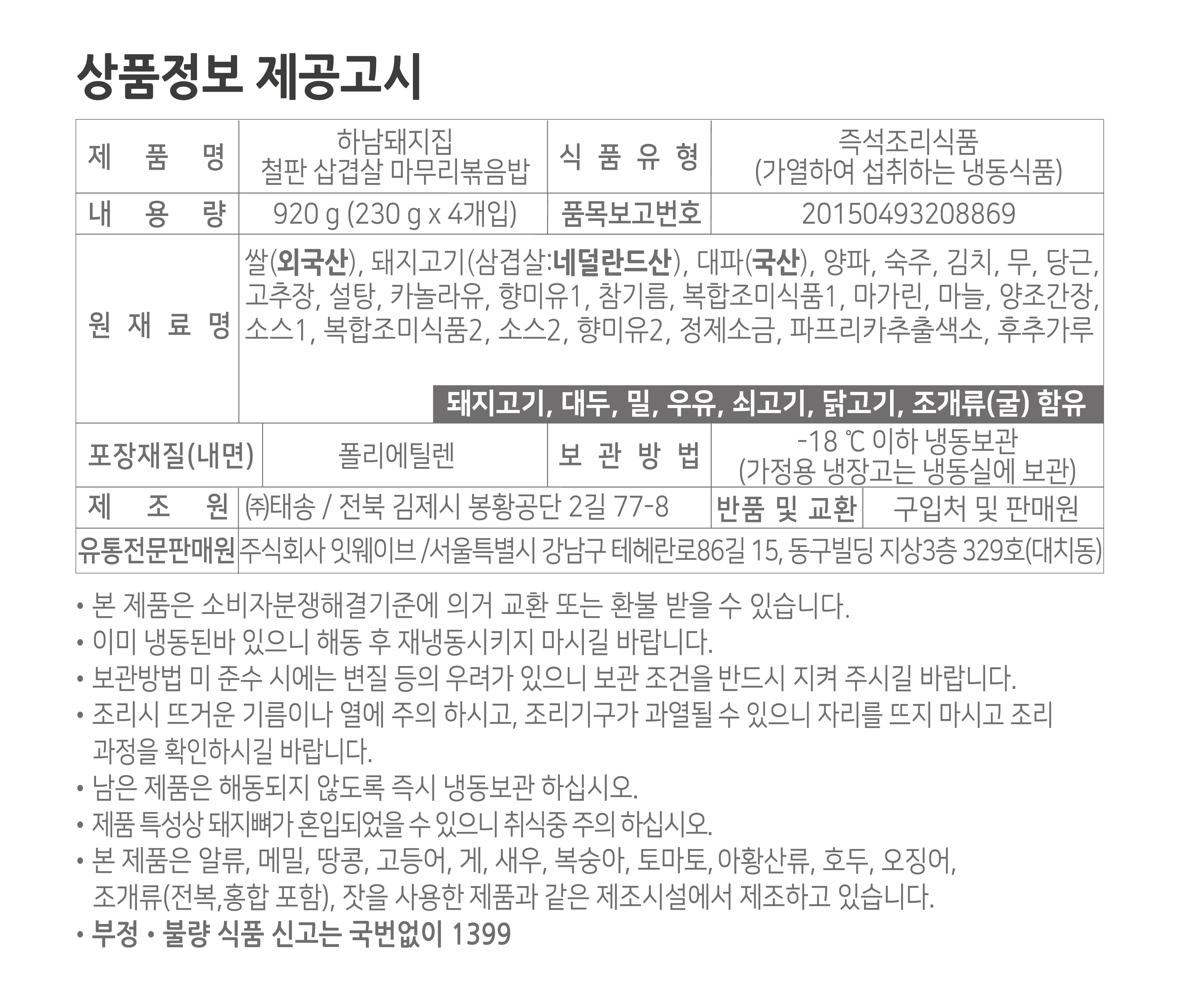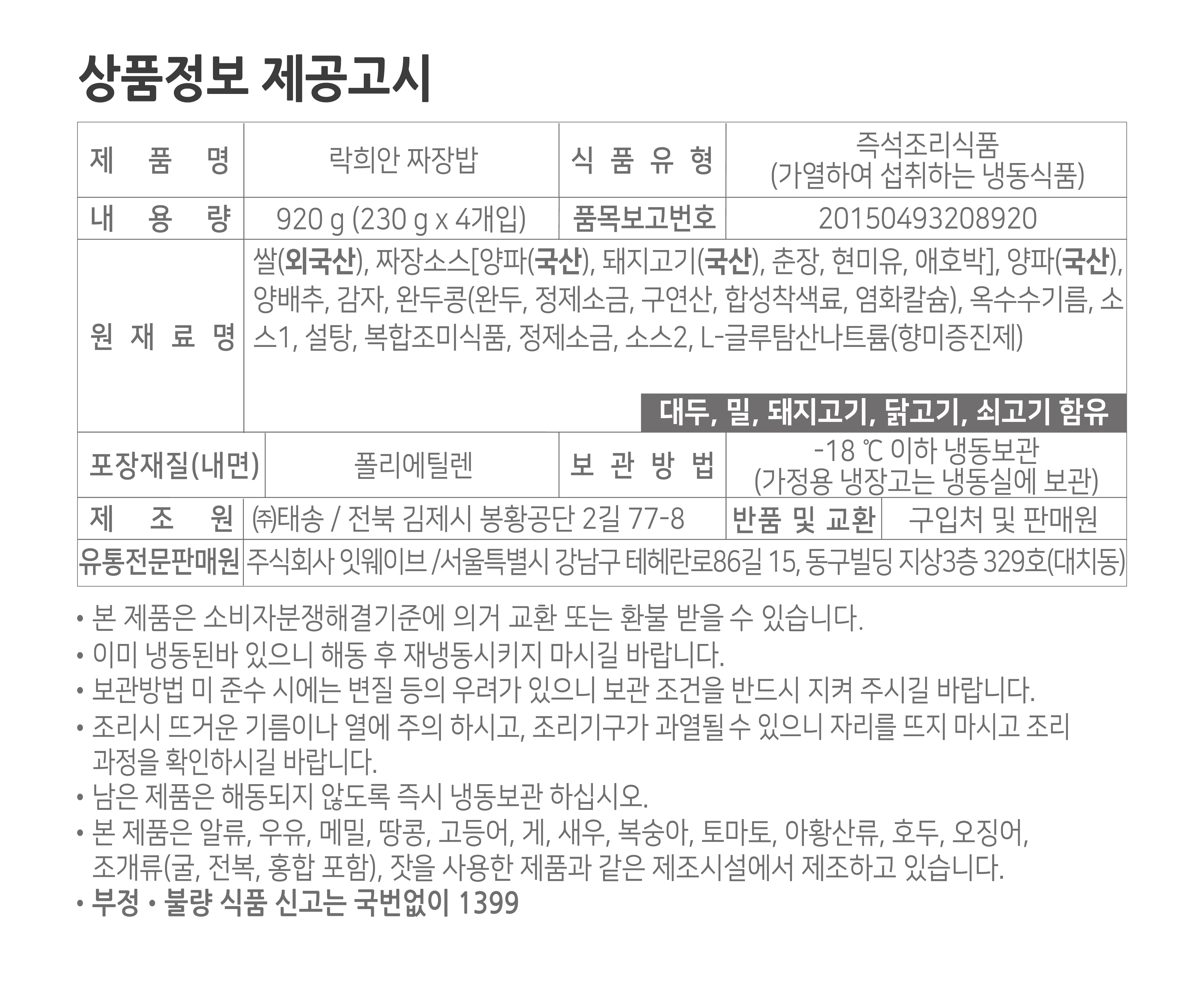 1봉당 920g / 1봉기준 4인분(230g x 4봉)