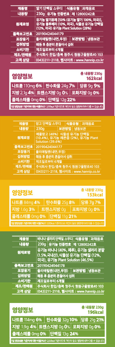 올바른 비율로 맞춰 먹기 좋게 만든 식물성(단백질) 유기농 스무디