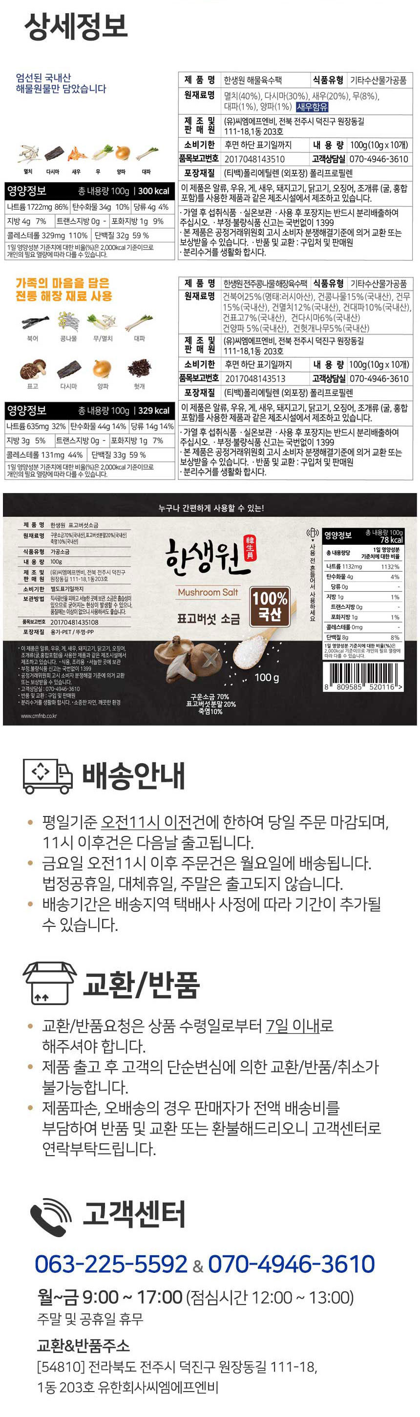 육수팩 1팩당:100g(10g x 10ea), 버섯소금 1통 100g