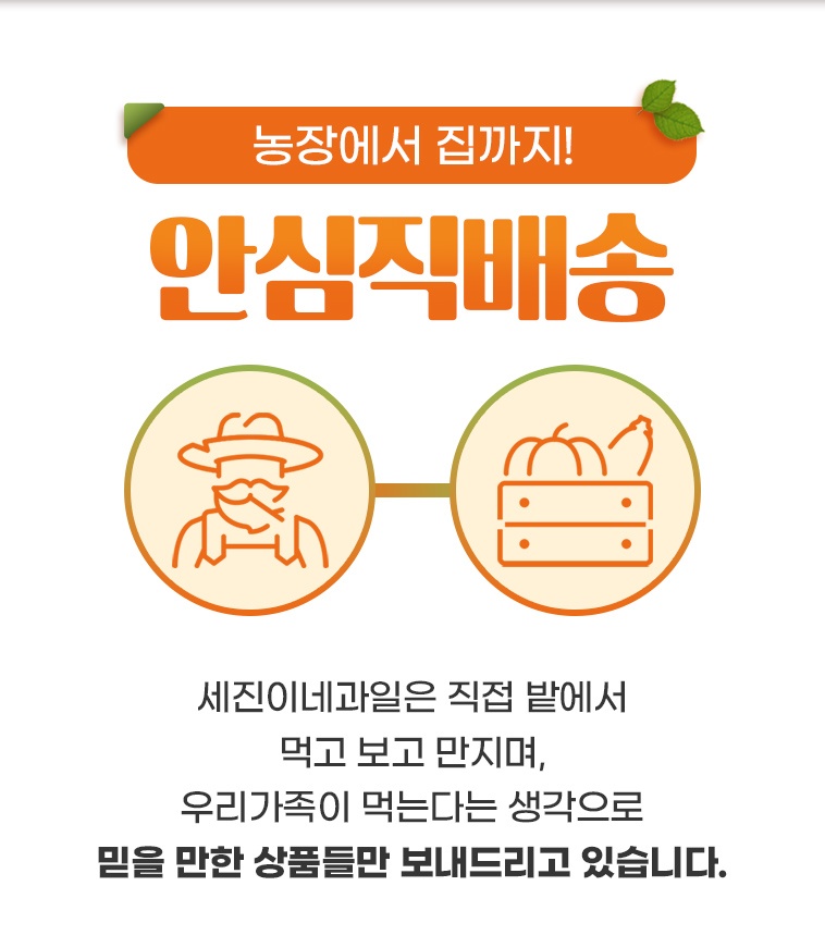 전통있는 친환경 유기농 농가와 직거래, 계약재배를 통해 철저하게 품질을 관리하고 있습니다. 안전하고 신선한 친환경 유기농 농산물을 일반 농산물과 비교해도 될 만큼 저렴하게 제공해 드립니다.