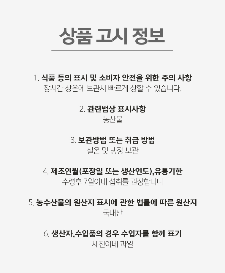매해 수확 /수령후 7일이내 섭취를 권장합니다