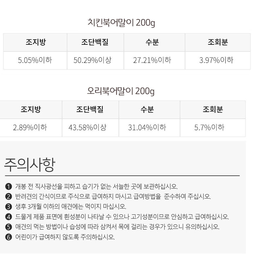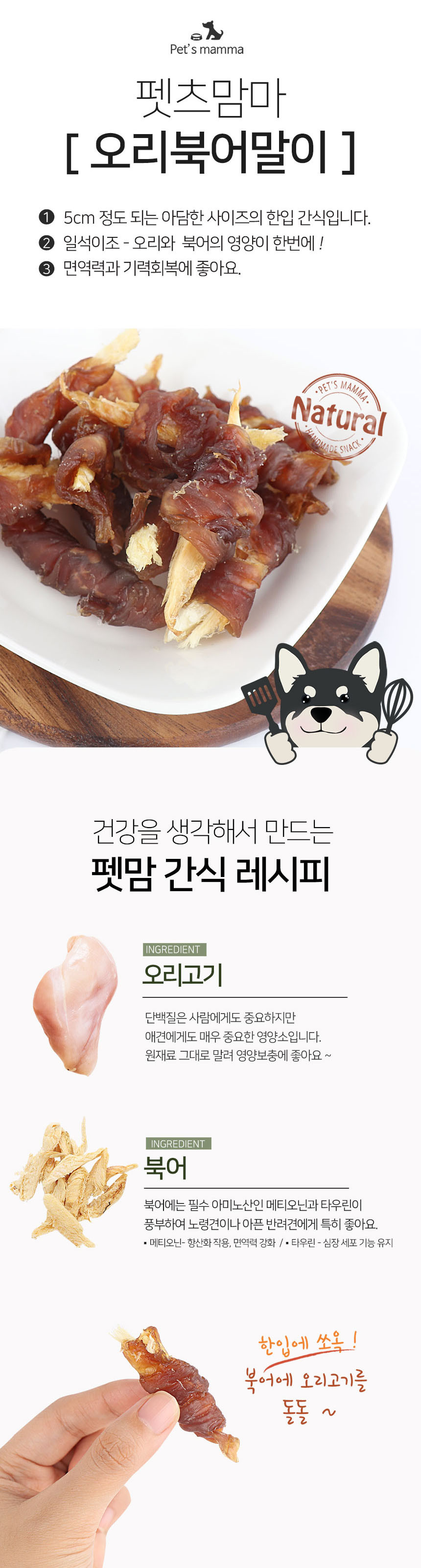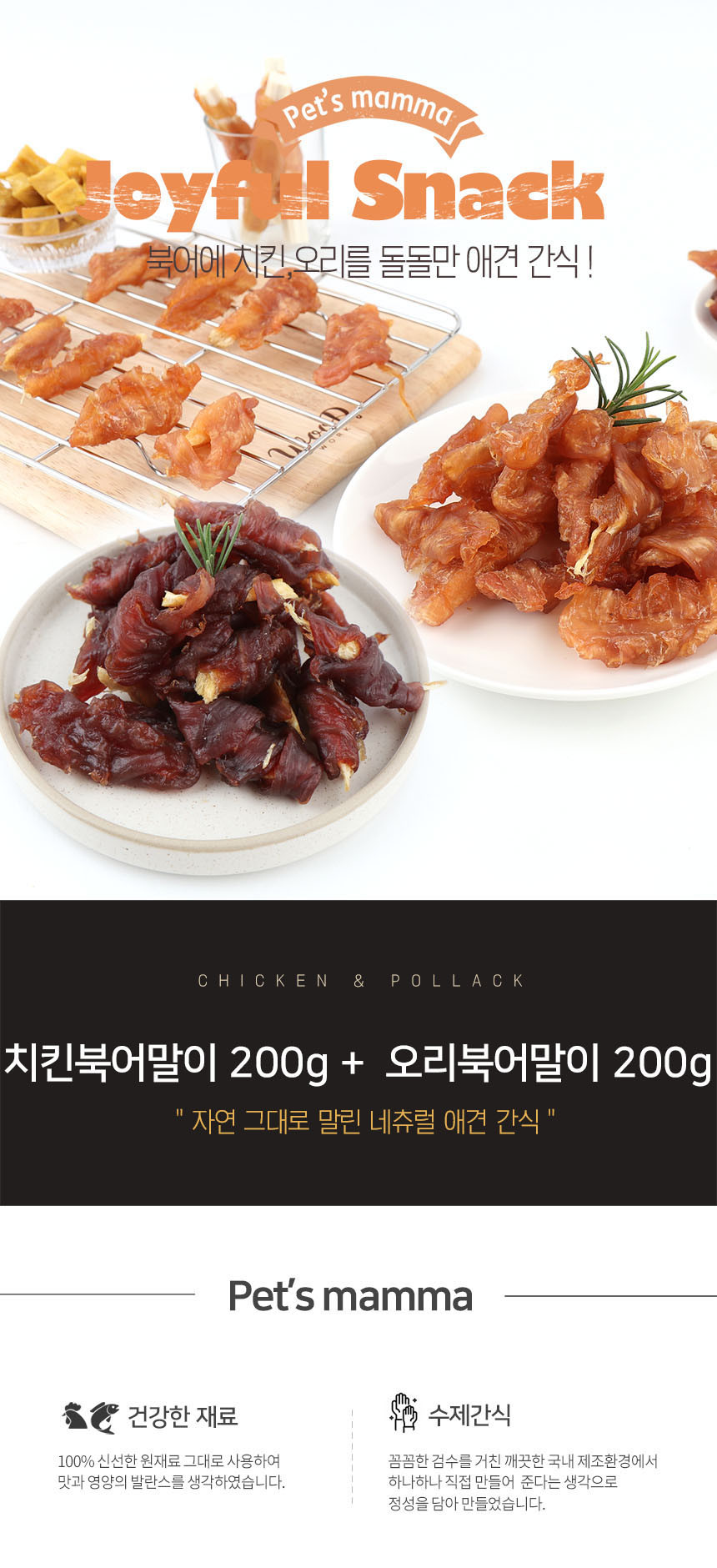 [펫츠맘마]국내산 수제간식 - 치킨북어말이200g+오리북어말이200g