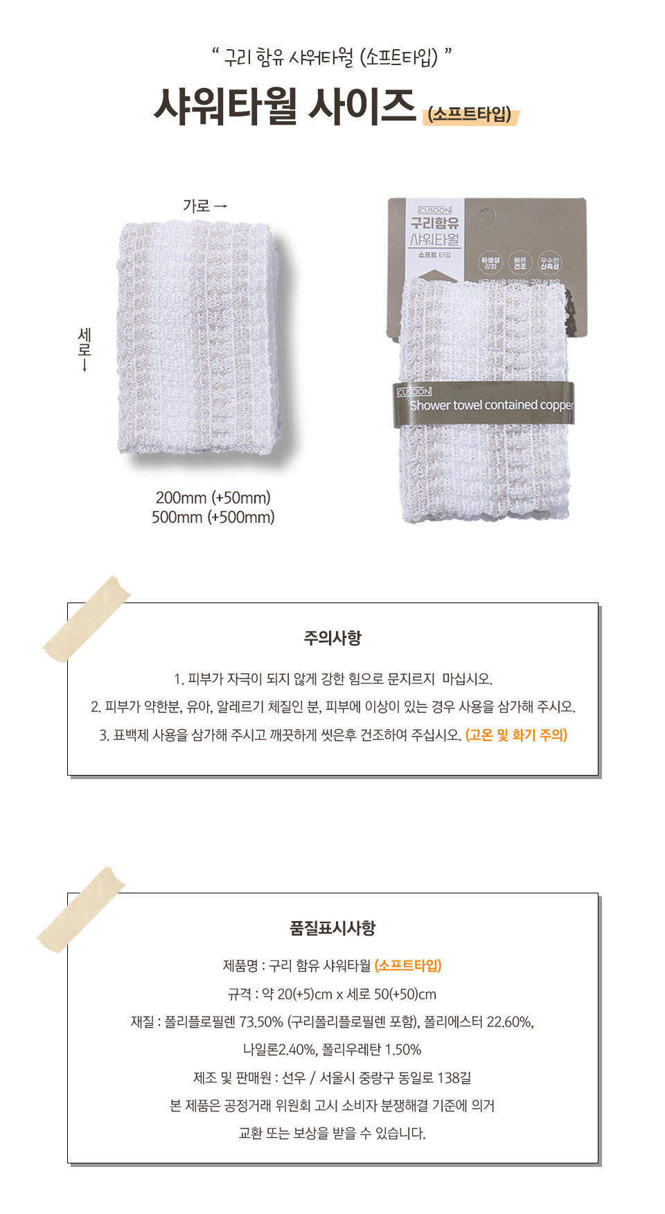 씨유순 구리함유 샤워타월 (일반형_소프트타입)