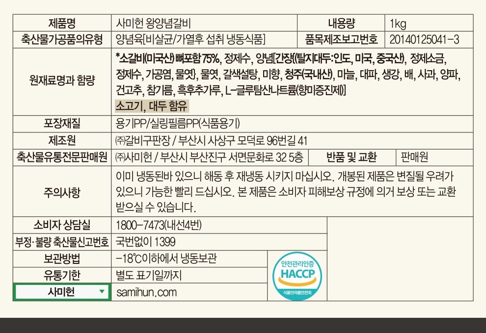 • 사미헌 왕양념갈비 1팩 [1kg]
