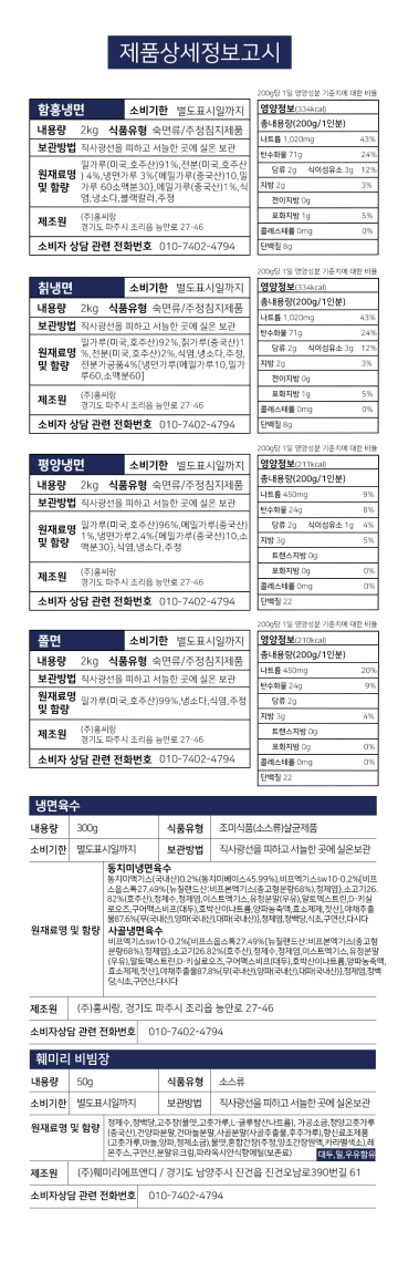 • 시원한 냉면 10인분세트. 함흥/평양/칡/쫄면+육수 5종선택.