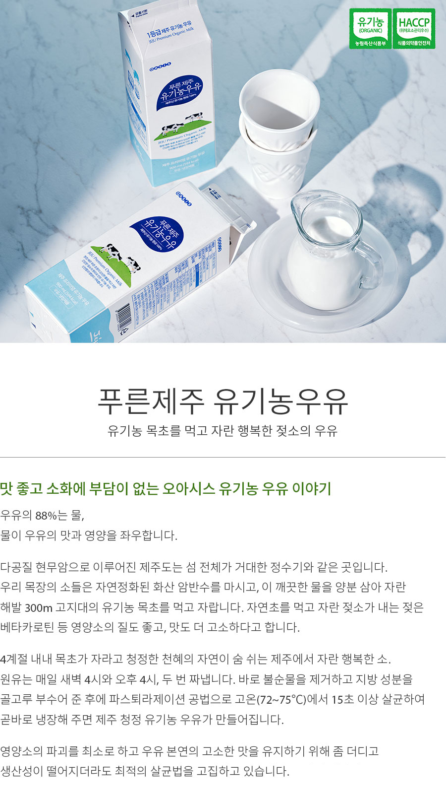 청정 제주 암반수를 먹고 자라 더욱 신선한 유기농 우유