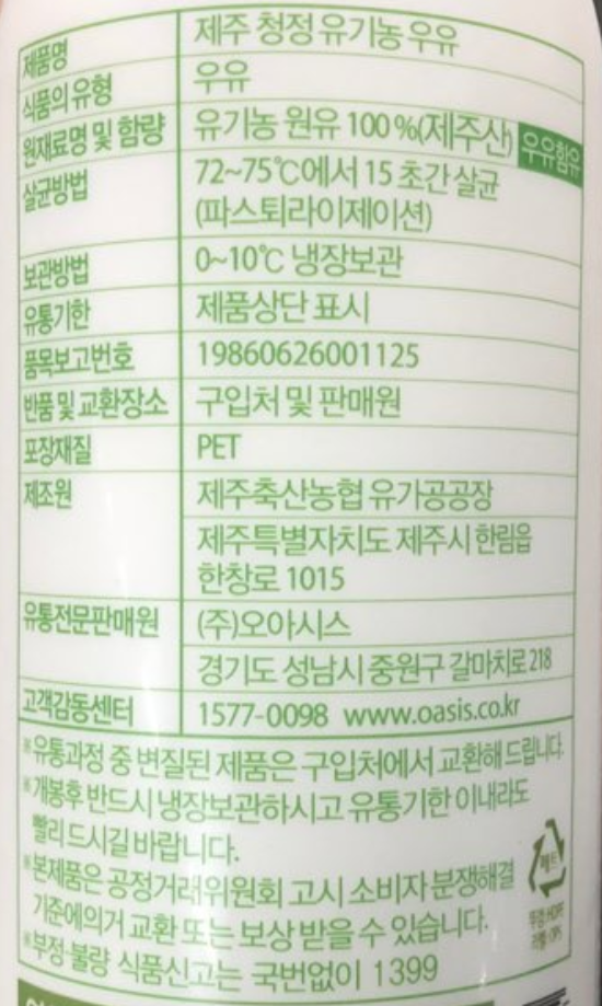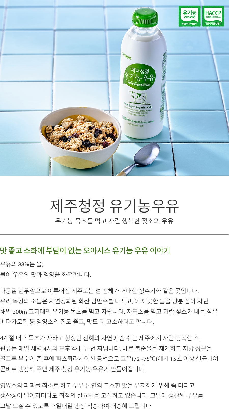 청정 제주 암반수를 먹고 자라 더욱 신선한 유기농 우유