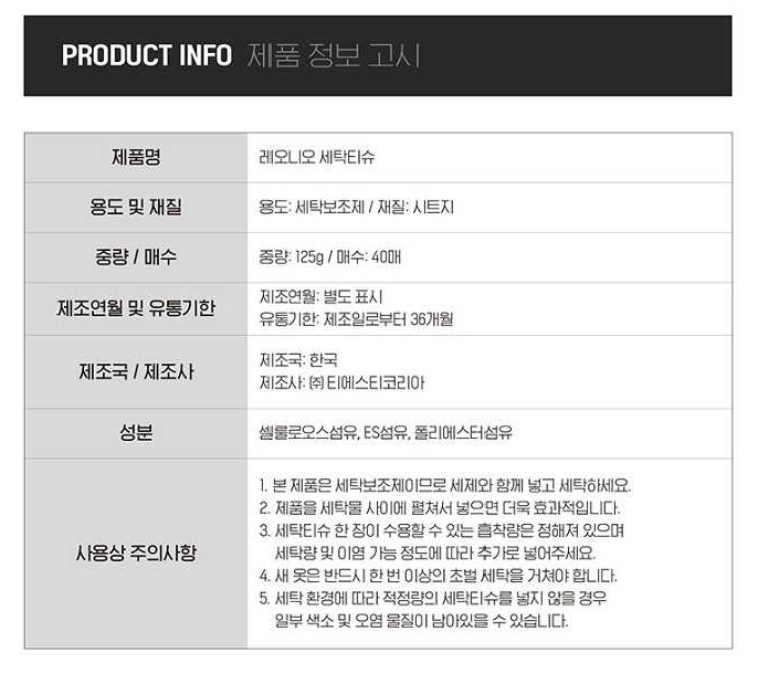 • 레오니오 이염방지 세탁티슈 총6박스(240매)