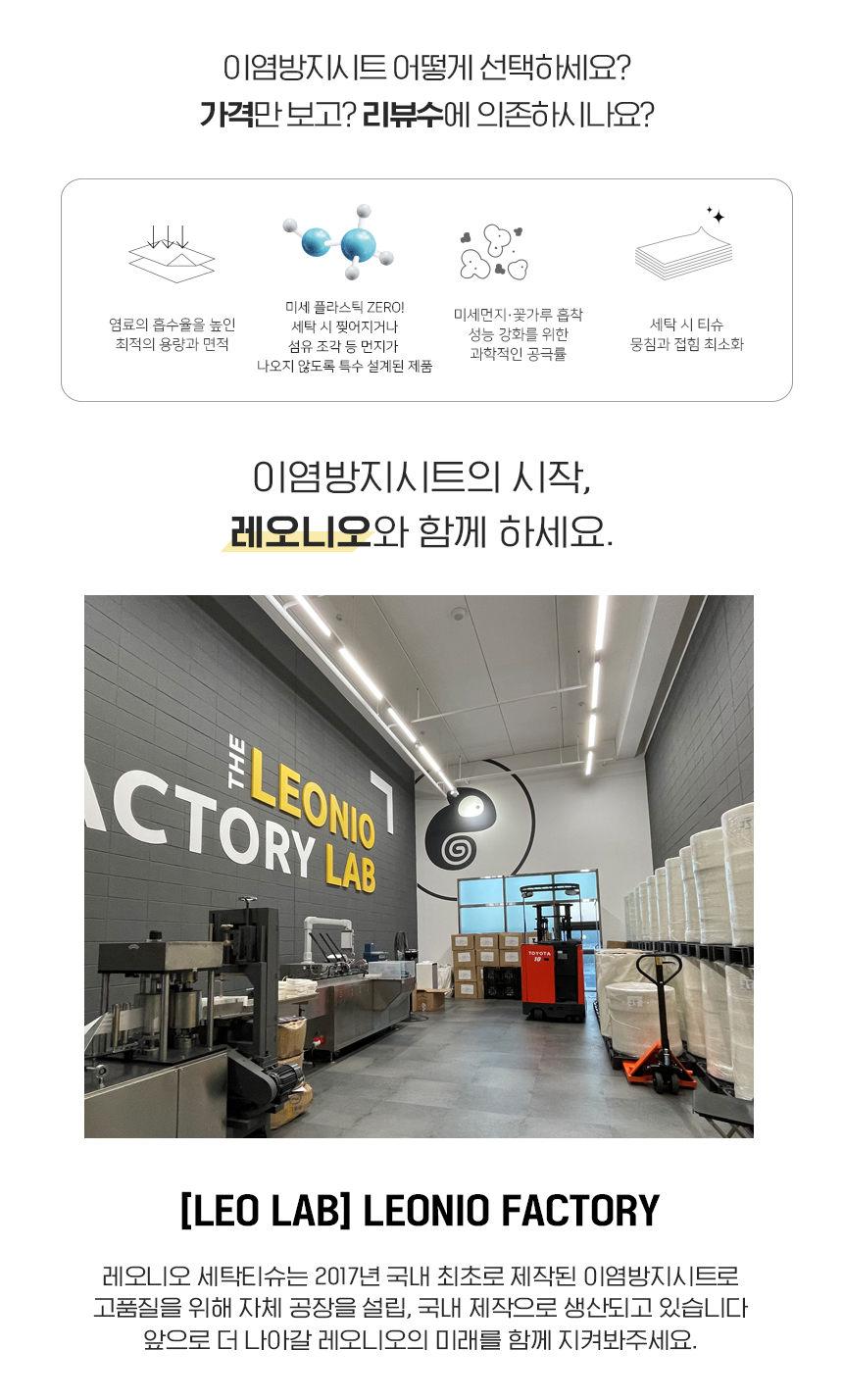 자체공장, 국내생산으로 믿을 수 있는 제품, 미세먼지와 꽃가루, 형광물질까지 흡착하는 이염방지시트입니다.