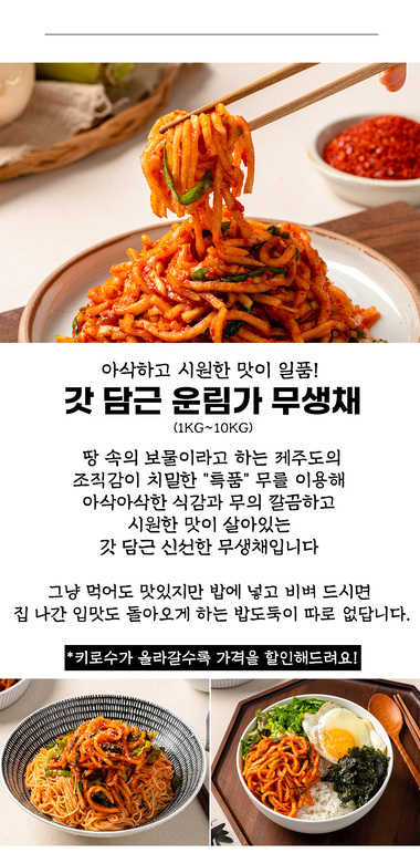 [운림가1970] 100%국산 농산물 수제 무생채 1kg