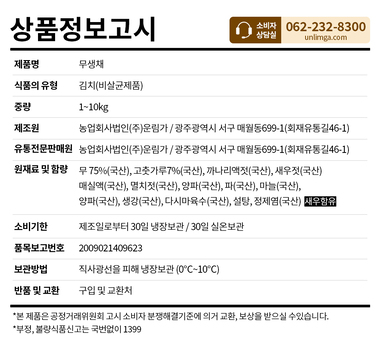 • [운림가1970] 100%국산 농산물 수제 무생채 1kg