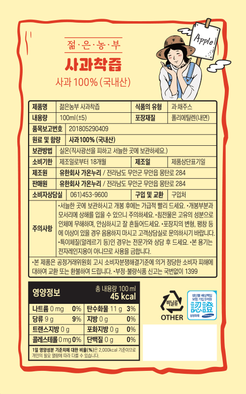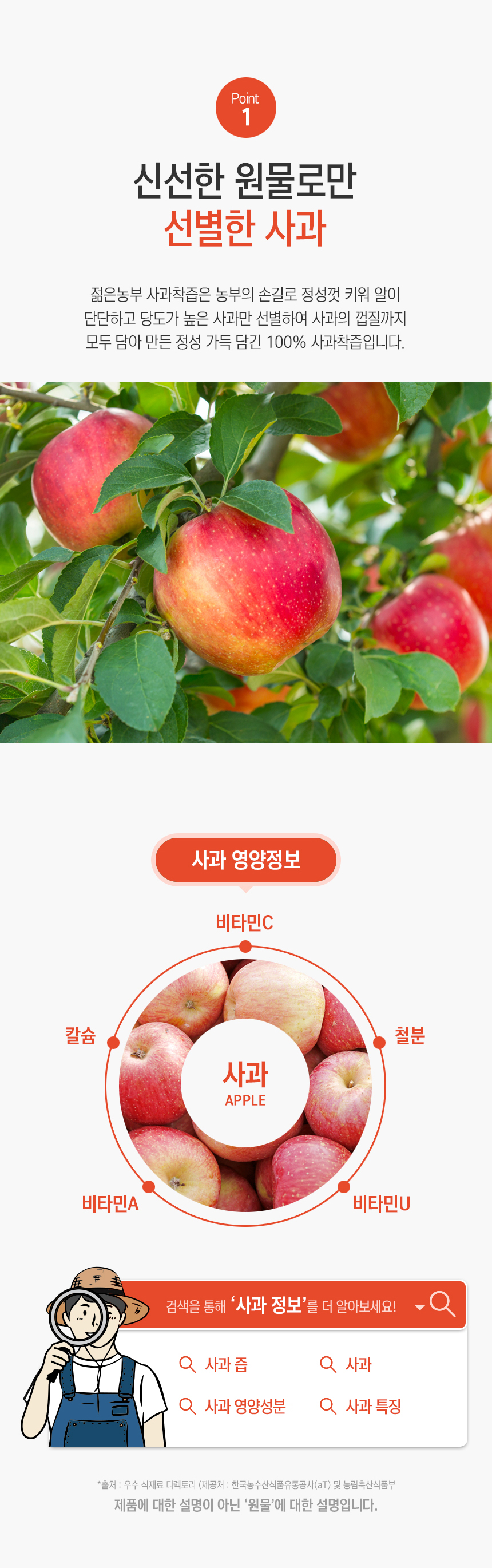 경북사과 100% 착즙형식으로 제조하여 맛도 좋아요! HACCP 시설에서 제조