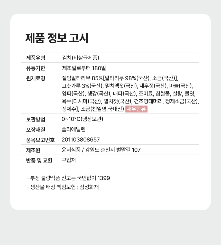 국내산 소양강 맑은 총각김치 (1kg, 3kg, 5kg)
