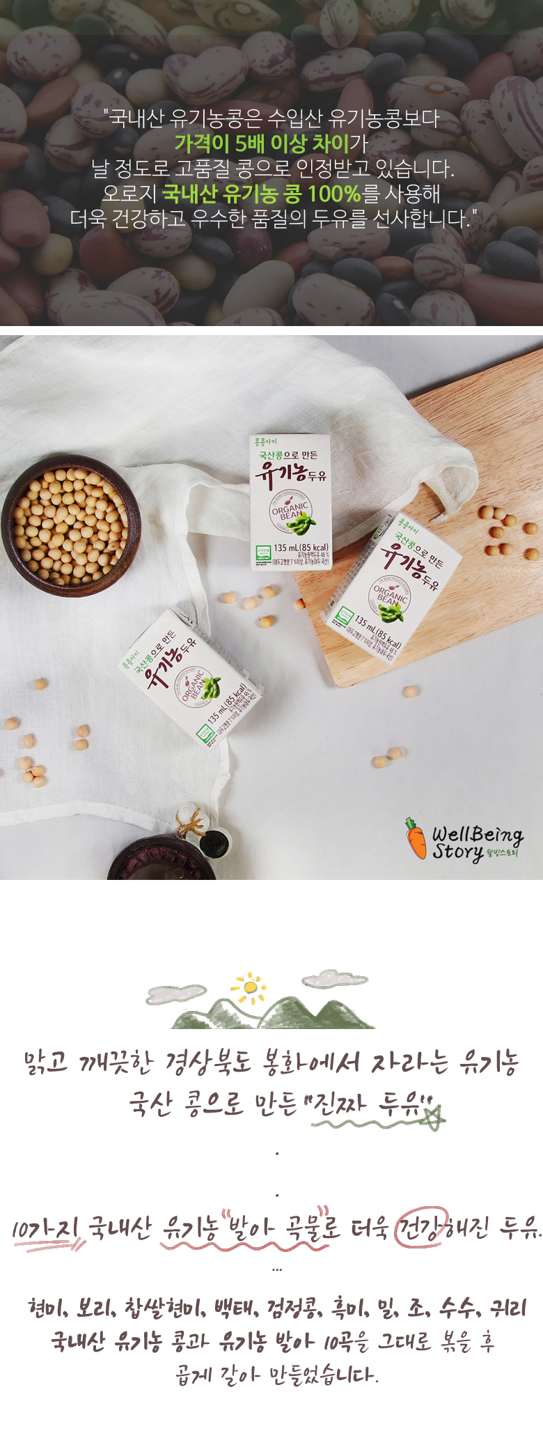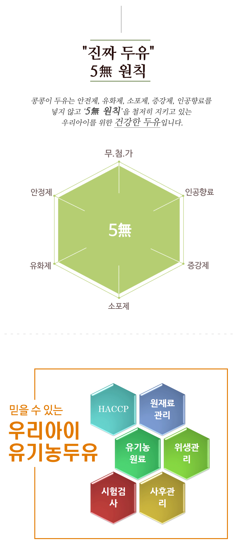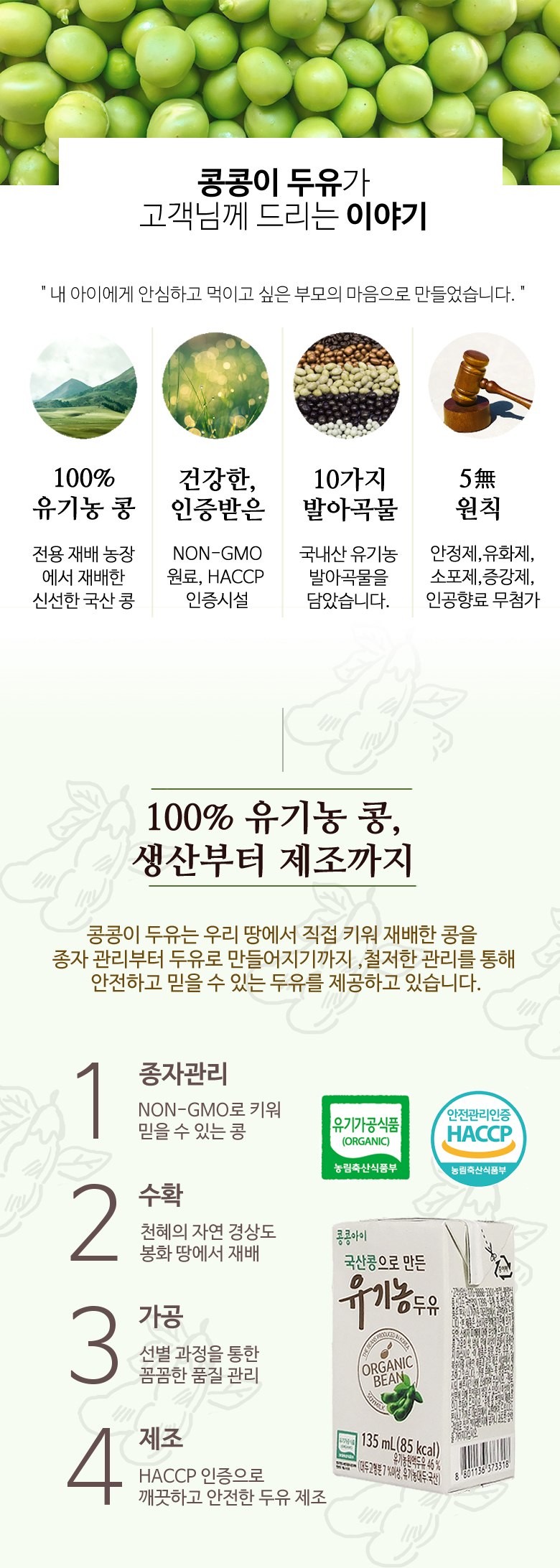 유기농원액두유 46%(대두고형분7%이상, 유기농대두 : 국산), 정제수, 유기농쌀가루(국산), 유기농발아미숫가루(국산:발아현미, 발아찰보리, 발아현미찹쌀, 발아백태, 발아검은콩, 발아찰흑미, 발아밀, 발아조, 발아수수, 발아귀리), 유기농검은깨페이스트(유기농검은깨:미국산), 유기농대두유-외국산(호주, 러시아, 프랑스등), 유기농황설탕, 유기농아가베시럽(맥시코산), 정제소금, 레시틴, 천연바닐라추출물 대두, 밀 함유