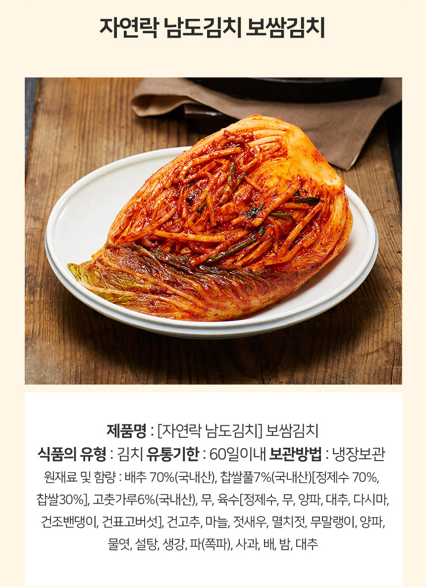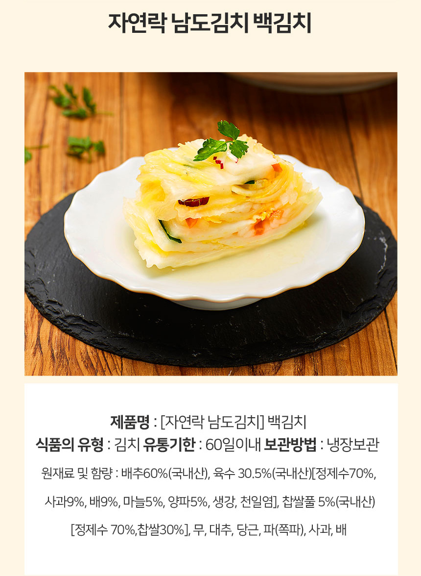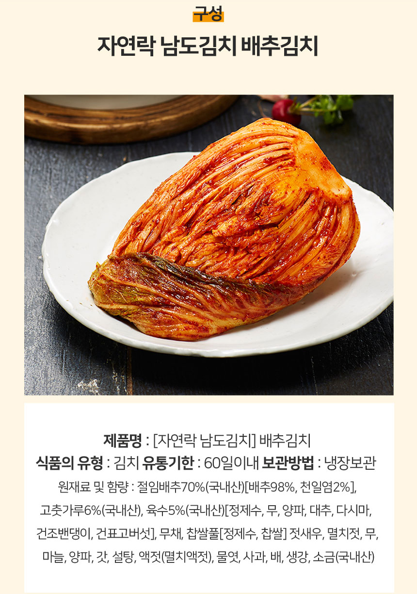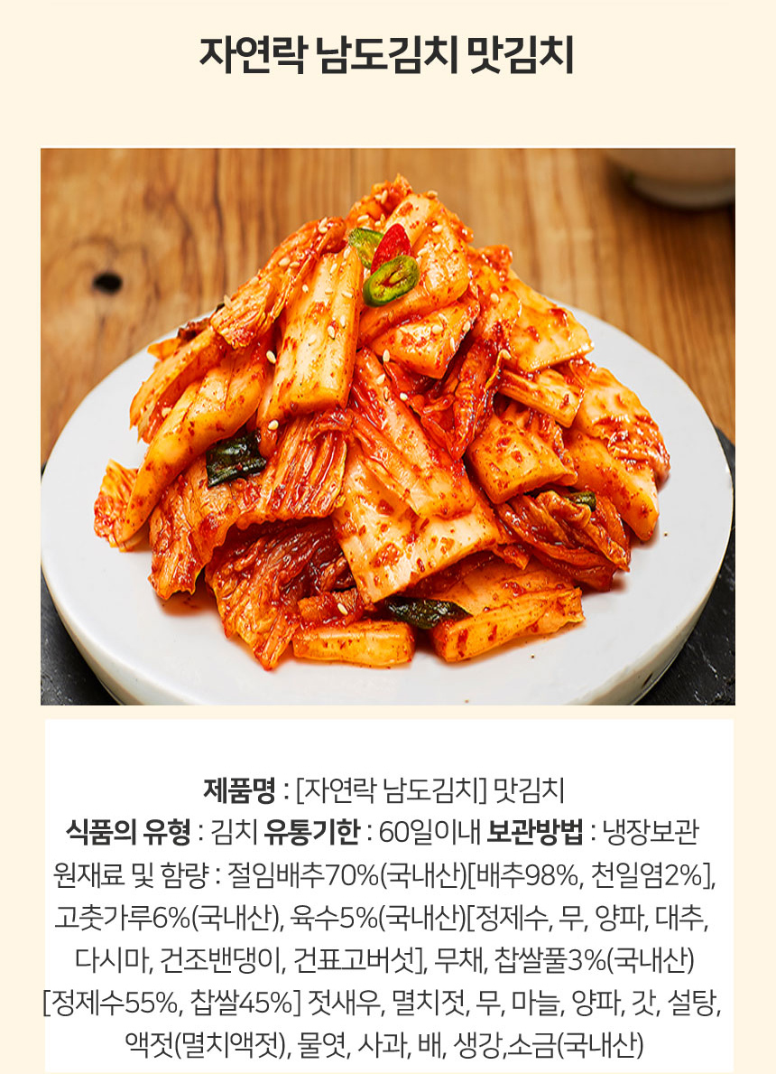 • 자연락 전라남도 손맛 김치 국내산 100%