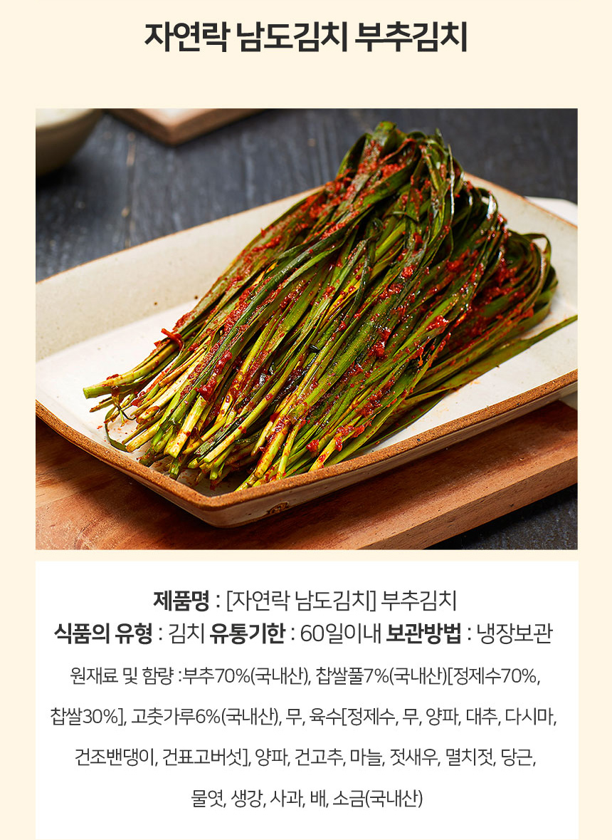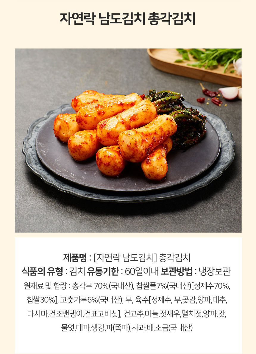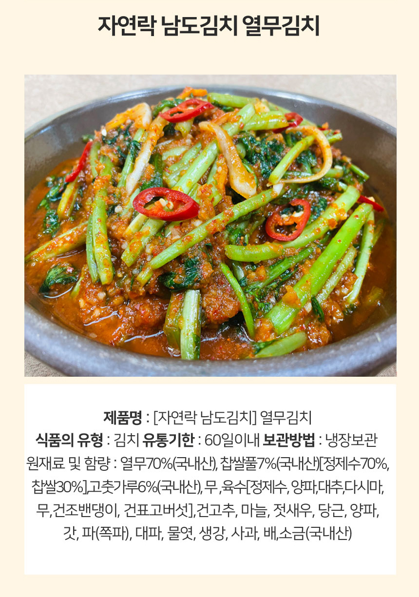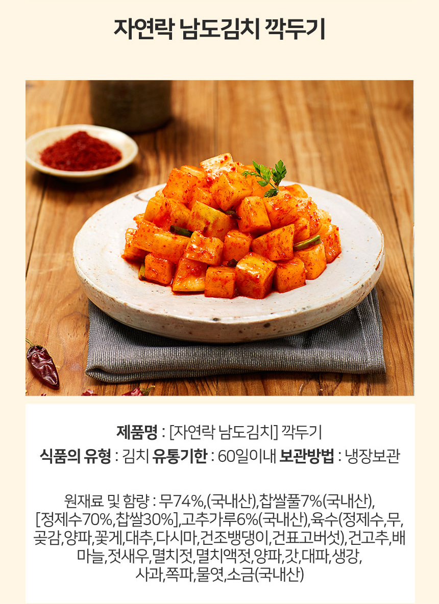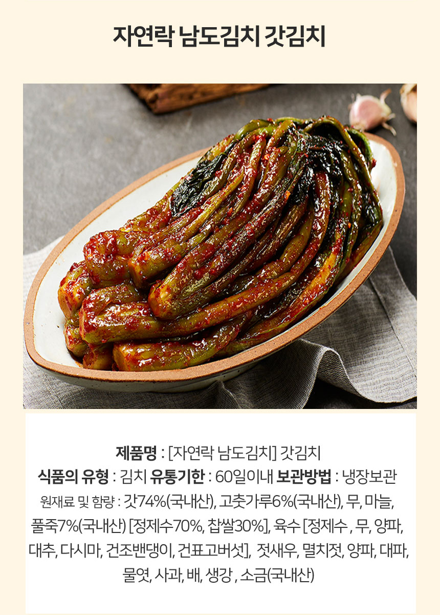 • 자연락 전라남도 손맛 김치 국내산 100%