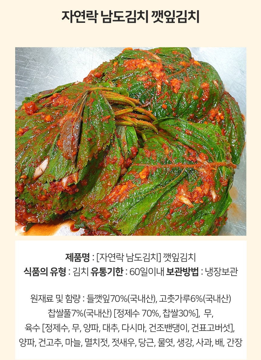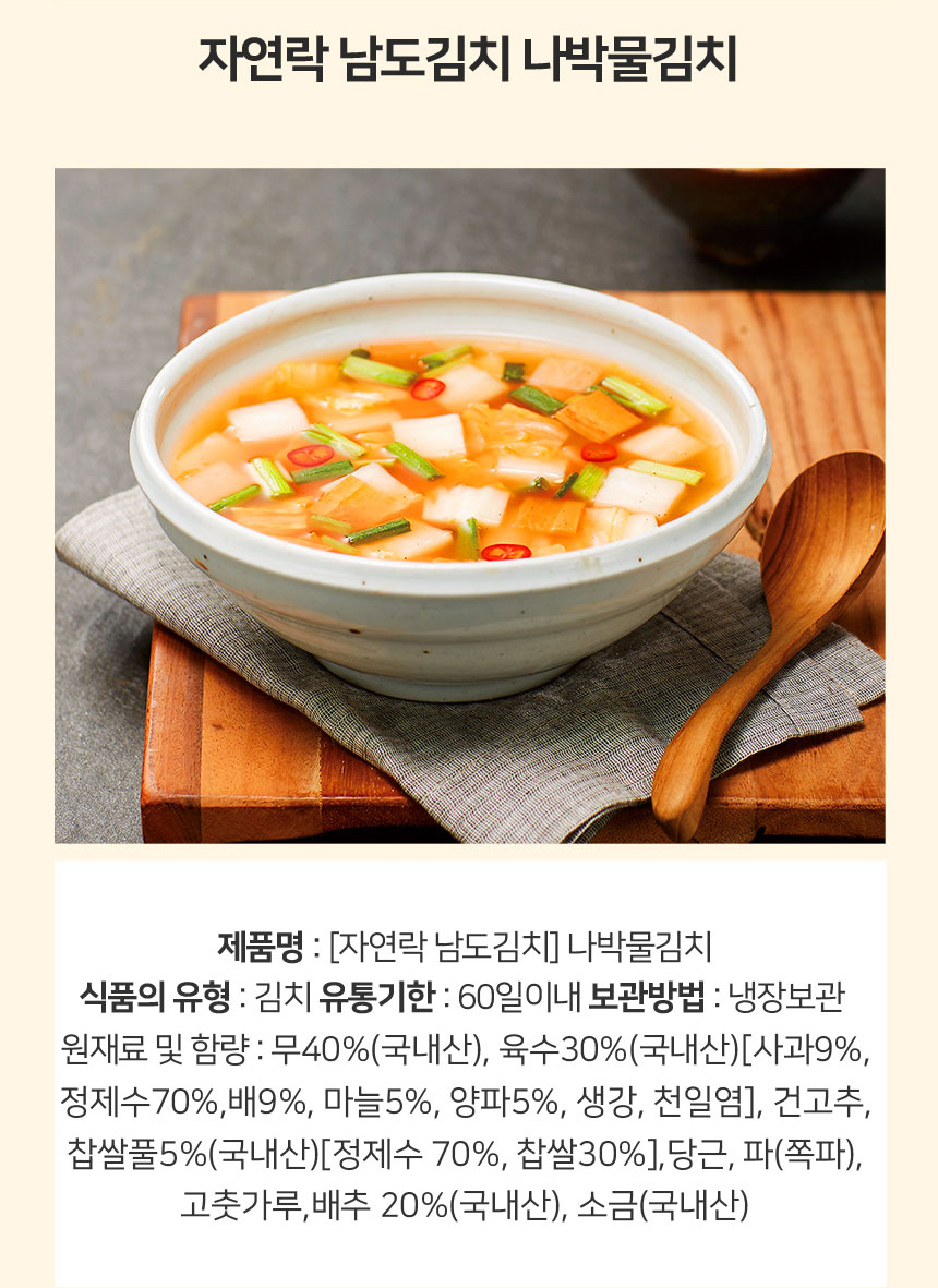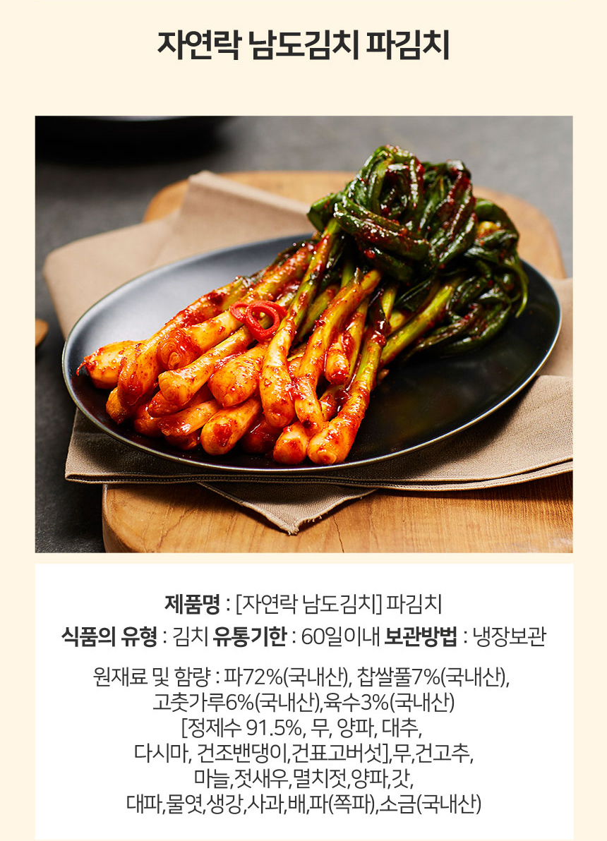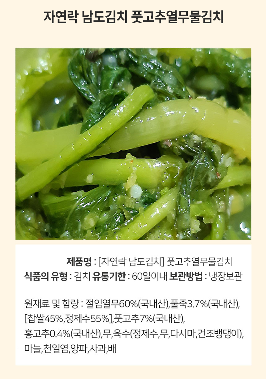 • 자연락 전라남도 손맛 김치 국내산 100%