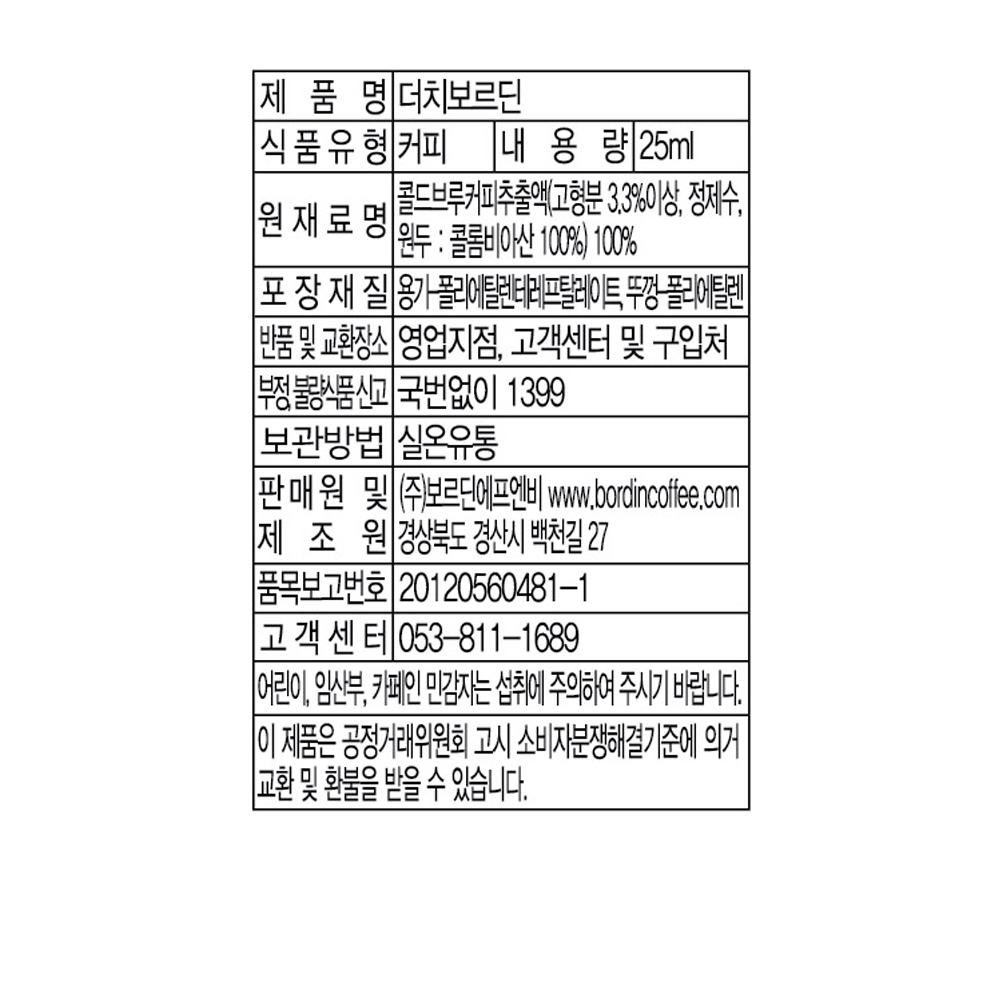 콜드브루커피 추출액(고형분3.3%, 정제수, 원두 : 인도네시아, 과테말라, 에디오피아, 코스타리카, 브라질, 콜롬비아, 베트남) 100%