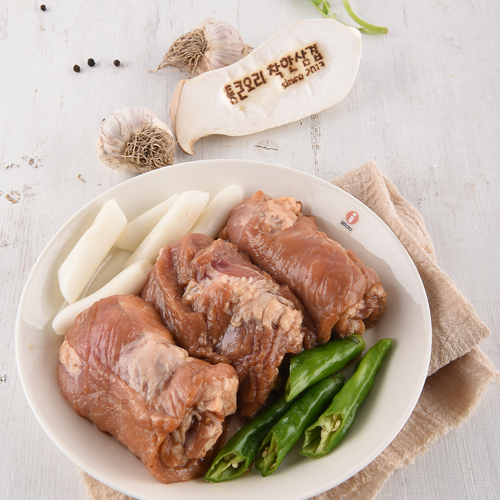 돼지갈비(국내산)60%,소스[배(국내산)0,67%,사과(국내산)0,67%,양파(국내산)0,67%,무(국내산)0,67%,파인애플슬라이스0,67%,아카시아청1.33%,설탕0,67%,참기름0,13%,물엿0,67%,맛소금0,26%,카라멜색소0,67%,글루탐산나트륨,정제수20%,간장5,2%