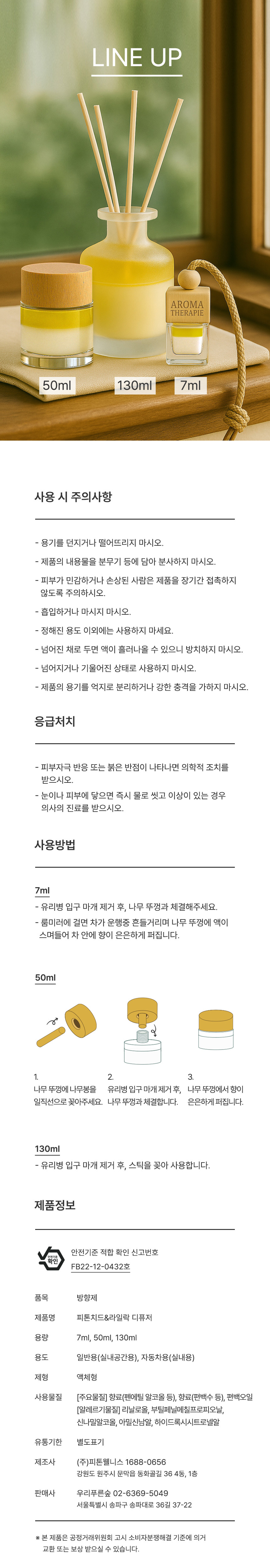 • 피톤치드 편백오일 디퓨저 방향제(차량용, 실내용)