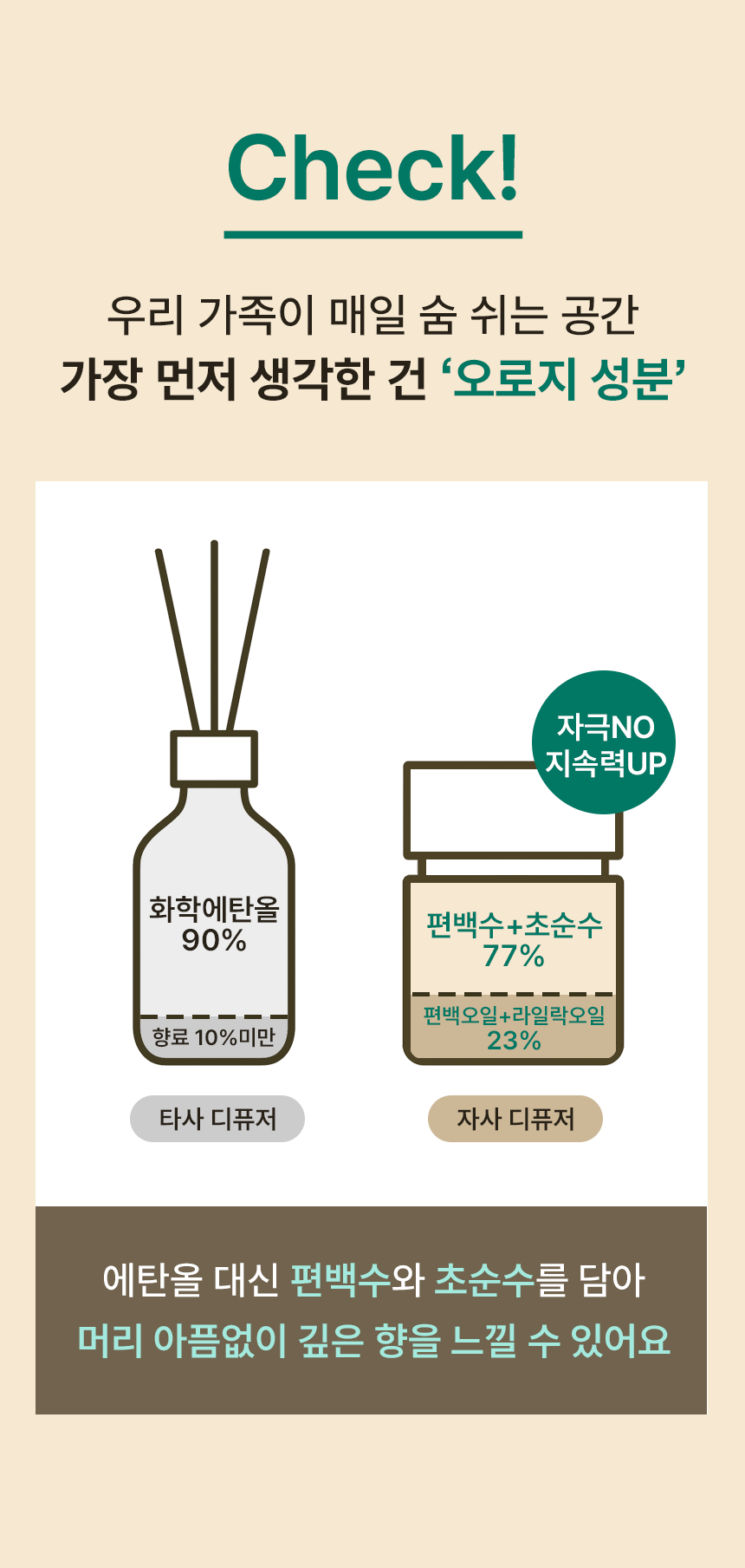 머리아픈 인공향과 비교 거부! 천연 편백 에센셜 오일 디퓨저