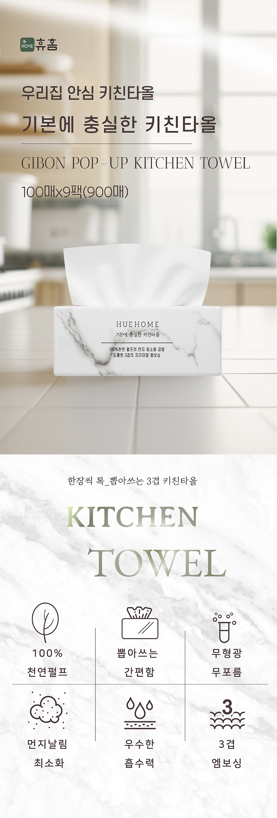 • 휴홈 뽑아쓰는 키친타올 100매 9팩 (900매)