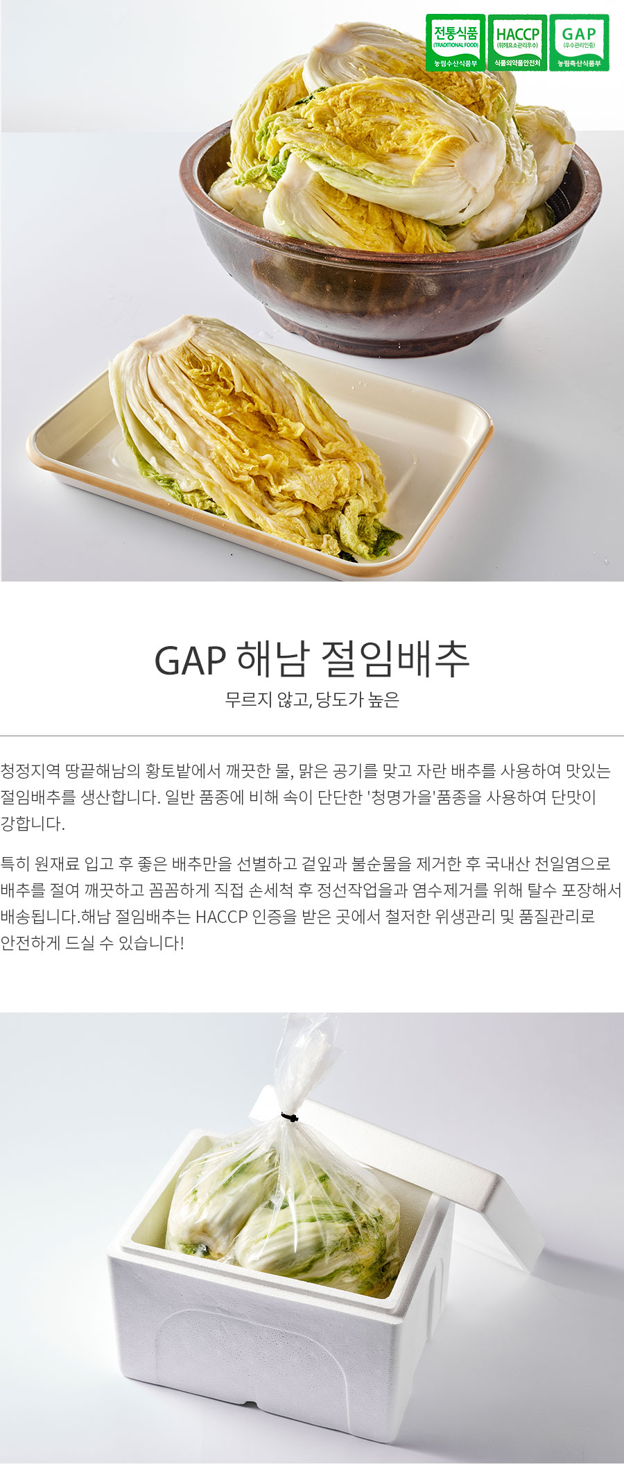 땅끝마을 해남에서 해풍맞고 자란 배추를 정성스럽게 절인