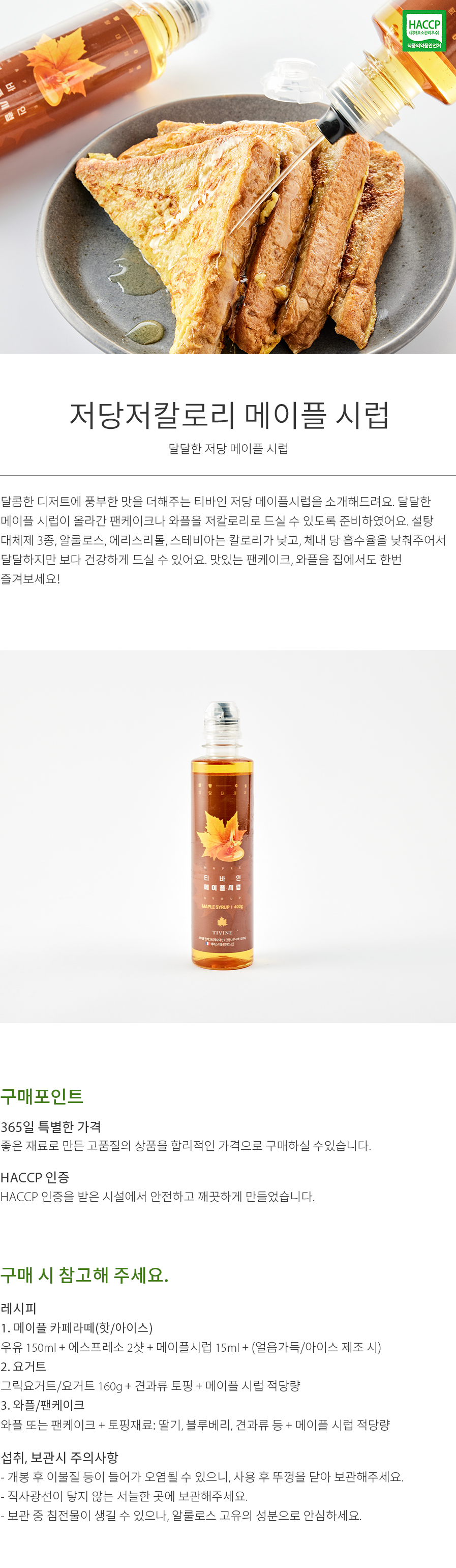 디저트에 저당 메이플 시럽으로 완성
