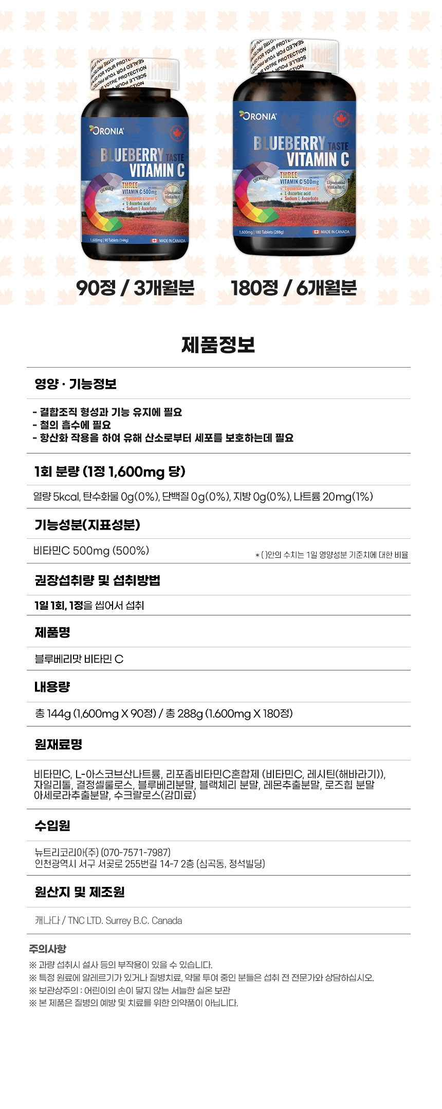 제조사 : TNC LTD. / 캐나다 / Surrey, B.C. 수입원 : 뉴트리코리아㈜ / 인천광역시 서구 서곶로 255번길 14-7 2층 (심곡동, 정석빌딩)