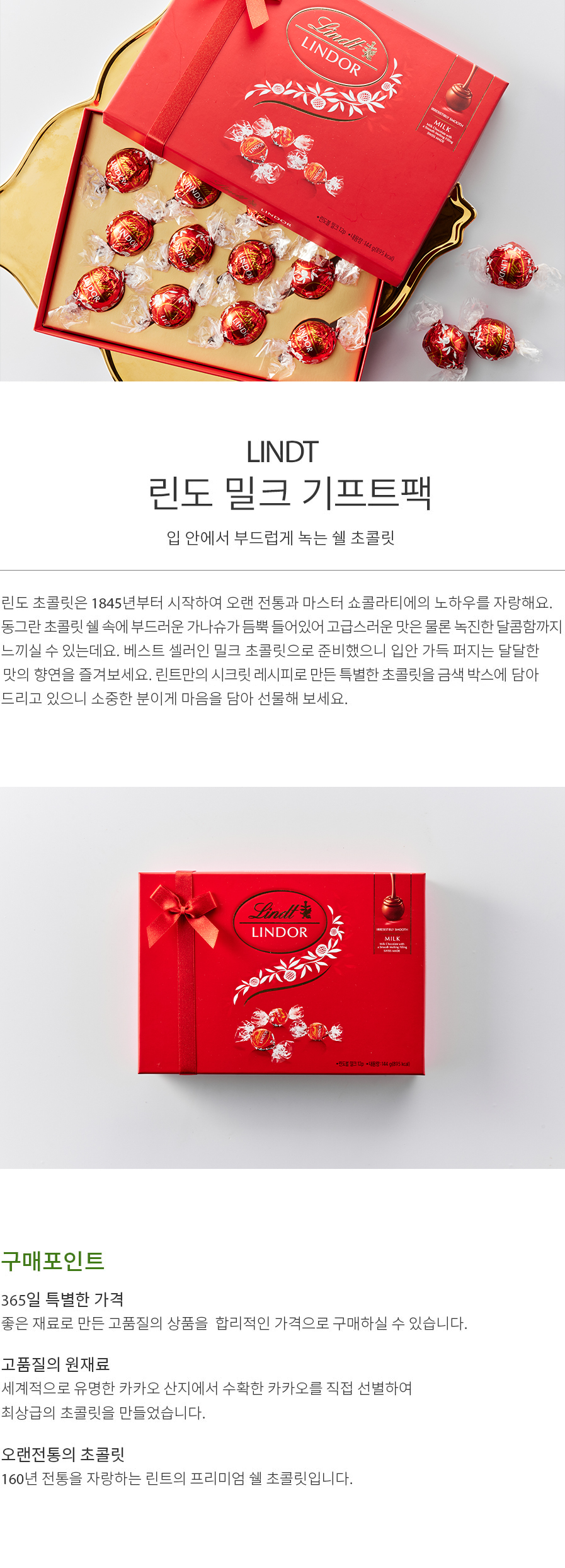 설탕, 식물성유지, 코코아버터(16.1%), 전지분유, 코코아매스, 유당, 유지방, 탈지분유, 레시틴, 맥아추출물, 합성향료(바닐라향, 카라멜향) *우유, 대두 함유