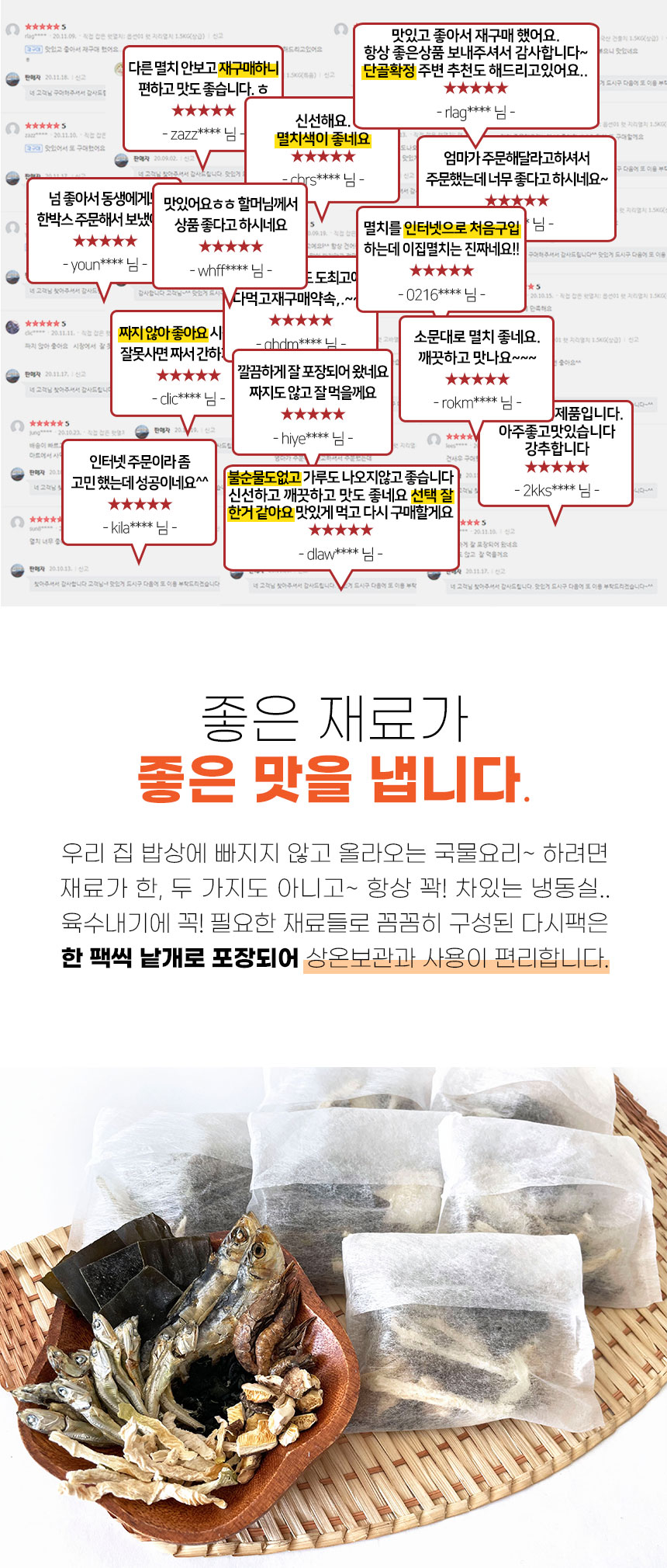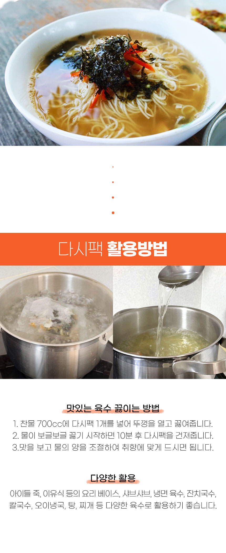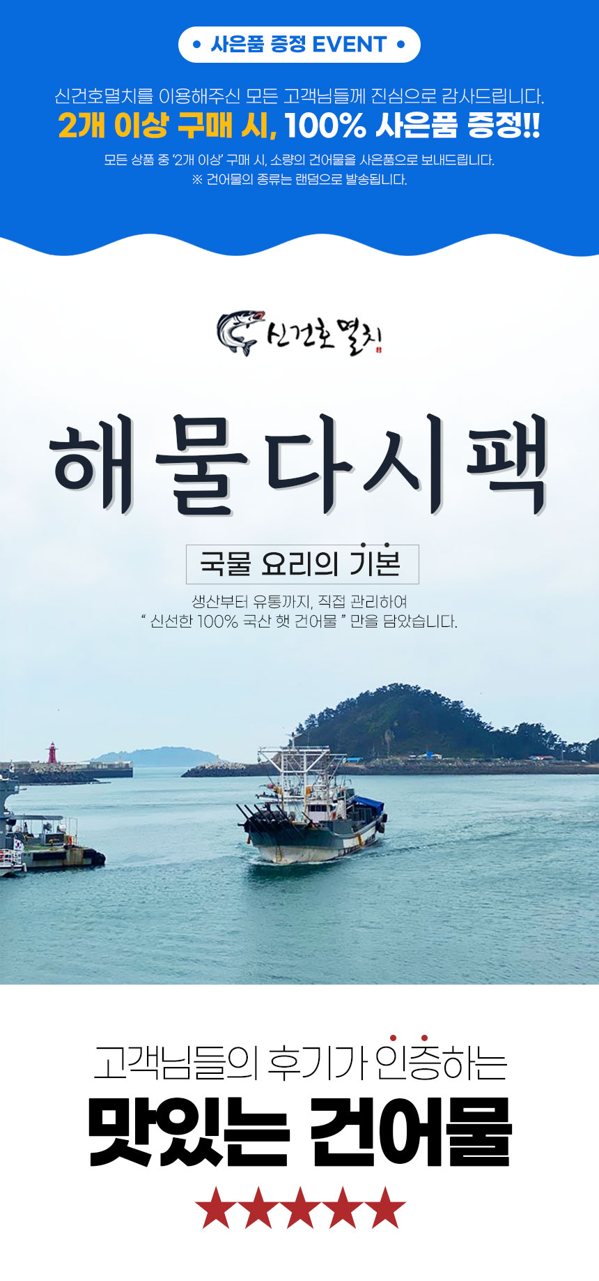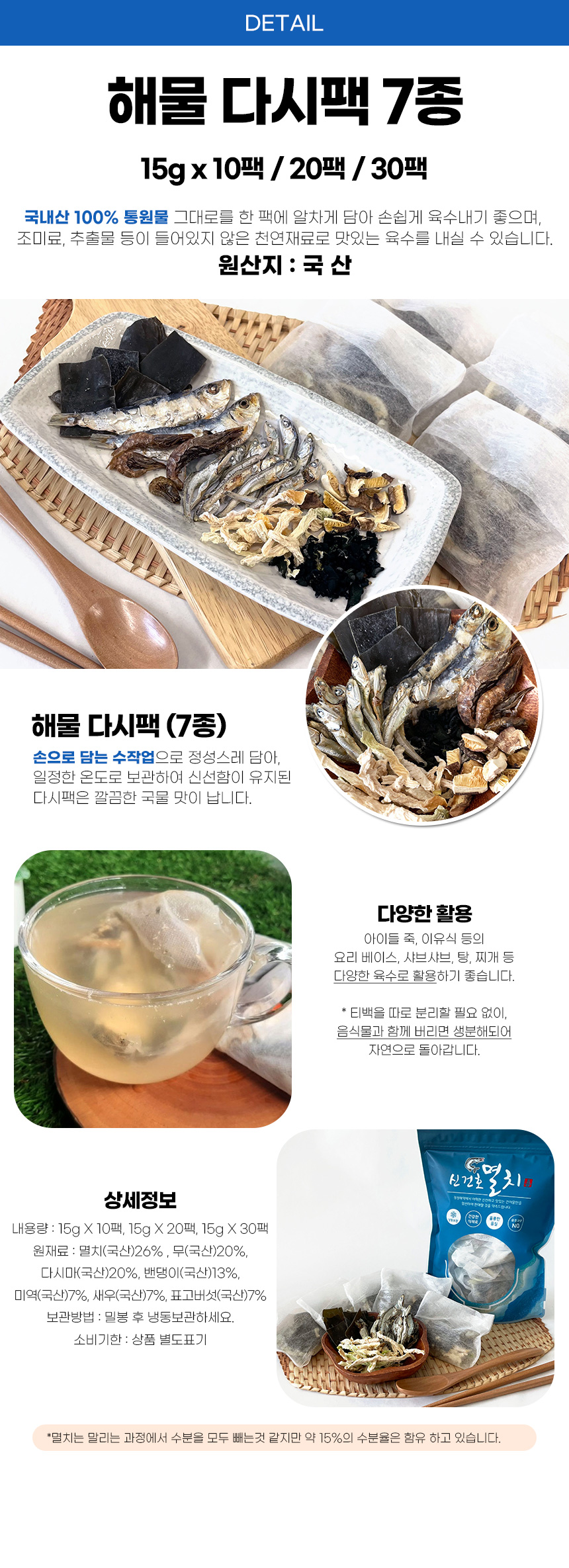 신건호멸치 해물 다시팩 7종 / 천연재료 국산 통원물 제주무 멸치 디포리 미역