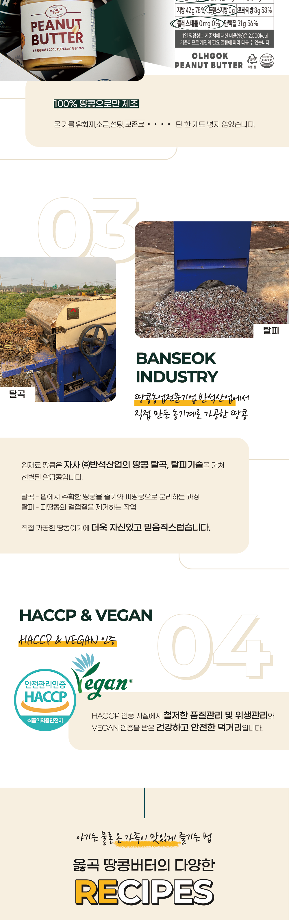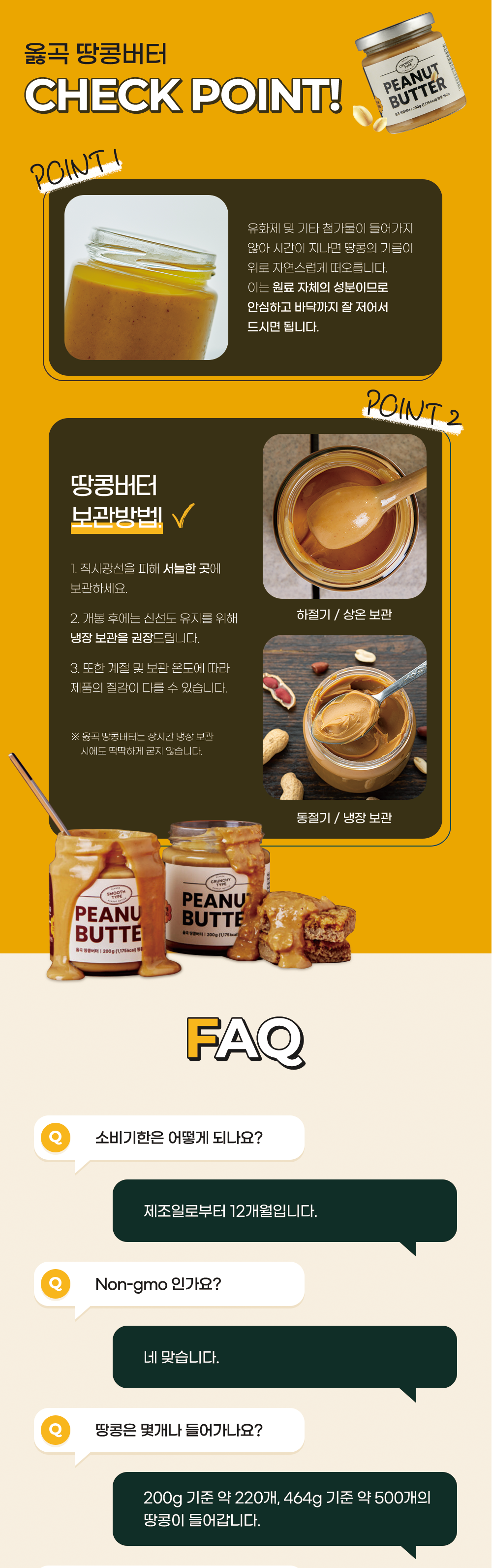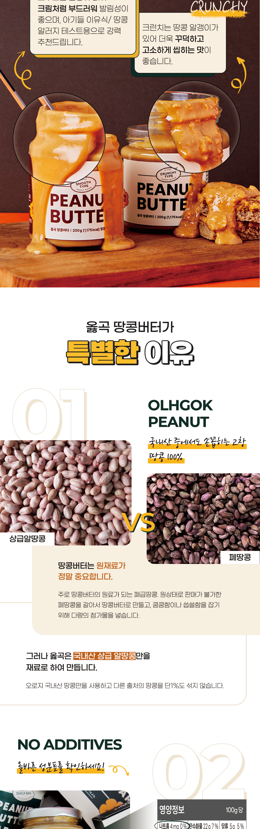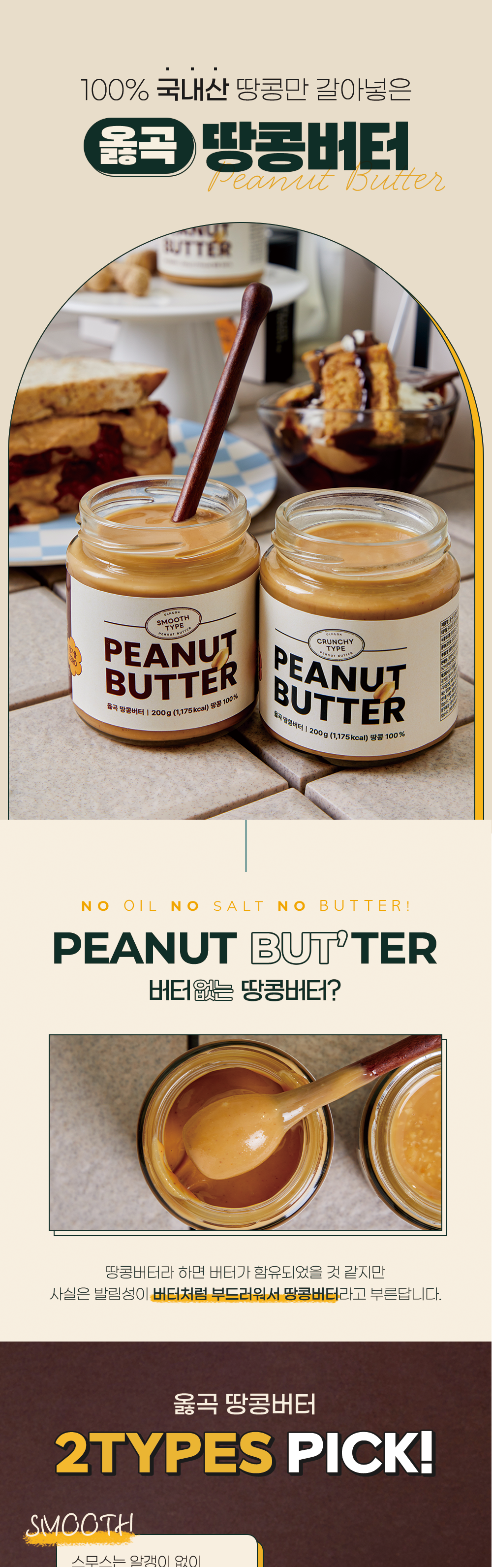 옳곡 국내산 100% 무첨가 땅콩버터 200g (크런치 / 스무스 ) 2종