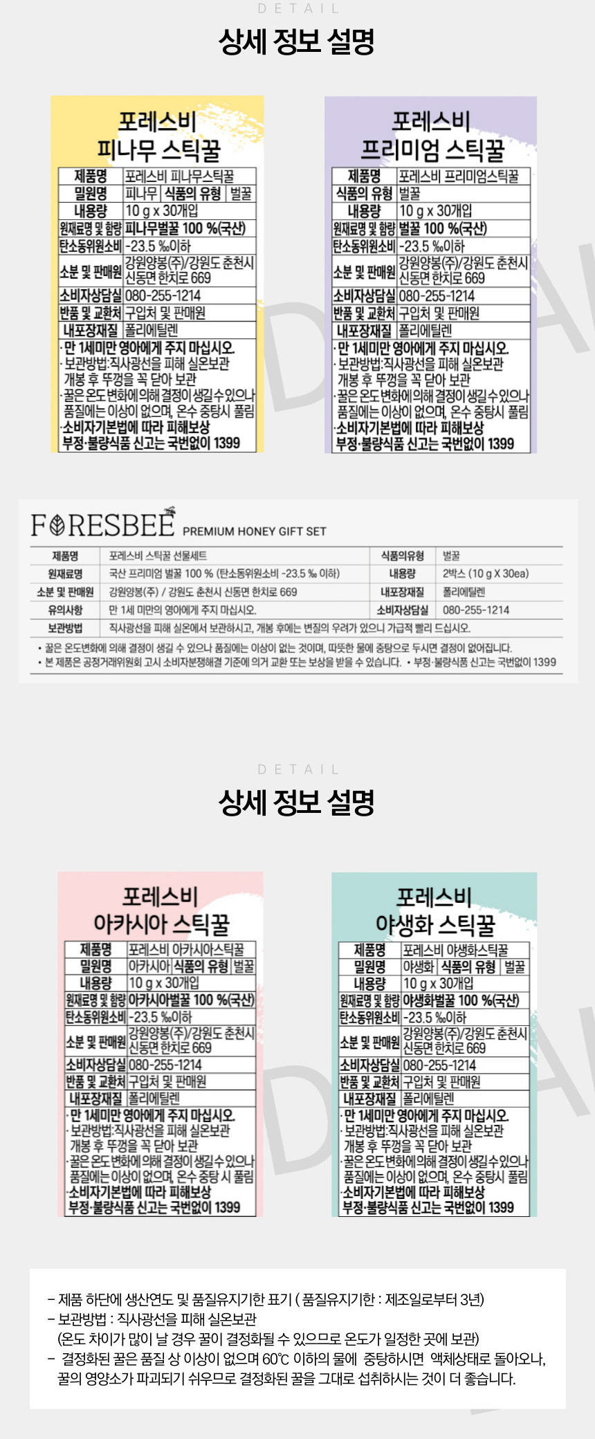 • 강원양봉 포레스비 스틱꿀 선물세트<10gx30입X2ea>
