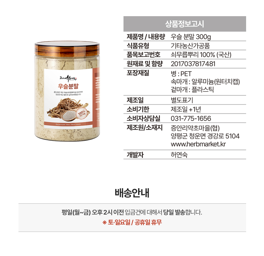 • 우슬 가루 300g 쇠무릎뿌리 분말 국산