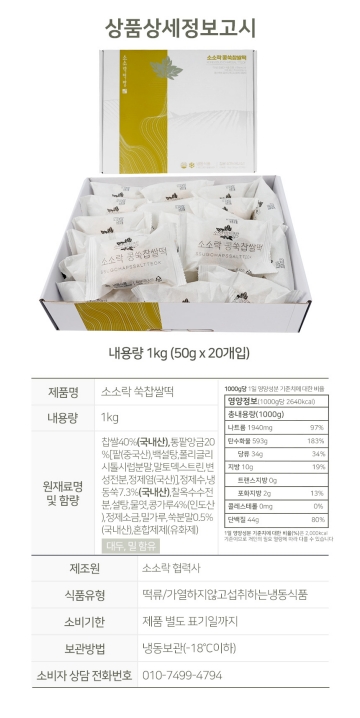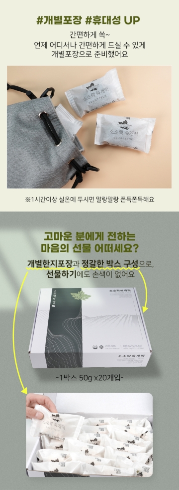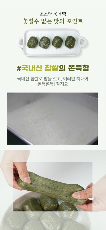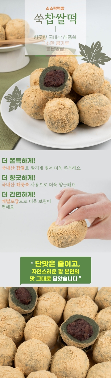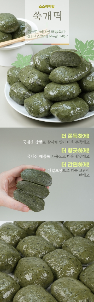 • 소소락 쑥개떡 1kg (50g 20개입) 외 쑥찹쌀떡/찹쌀떡/영양약밥. 국내산 찹쌀, 해풍쑥, 개별포장.