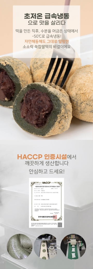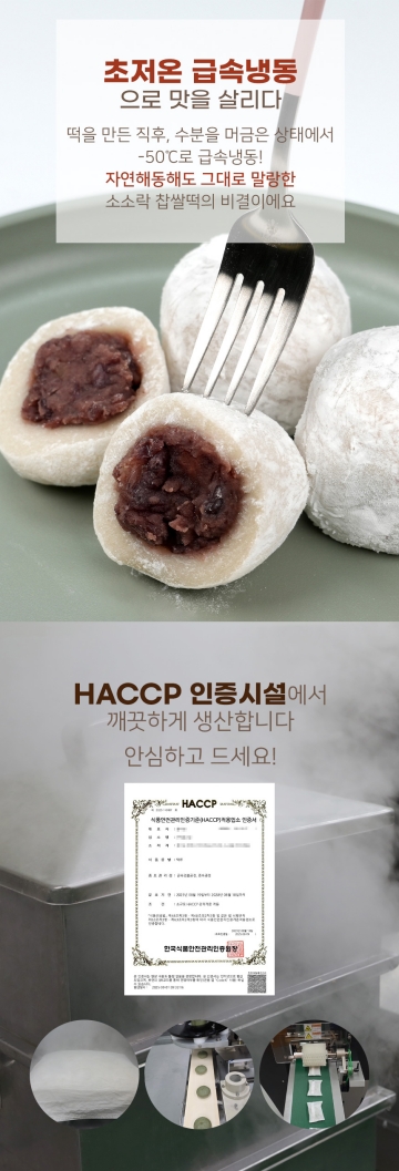 HACCP인증을 받은 위생설비시설에서 깨끗하고 정성스럽게 만듭니다.