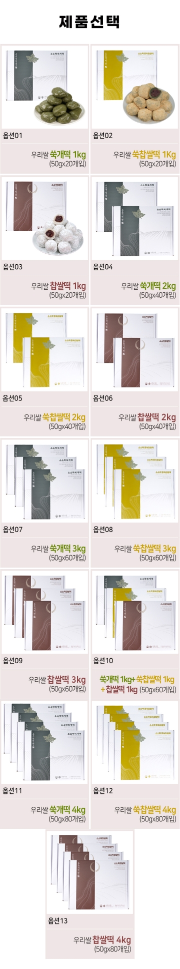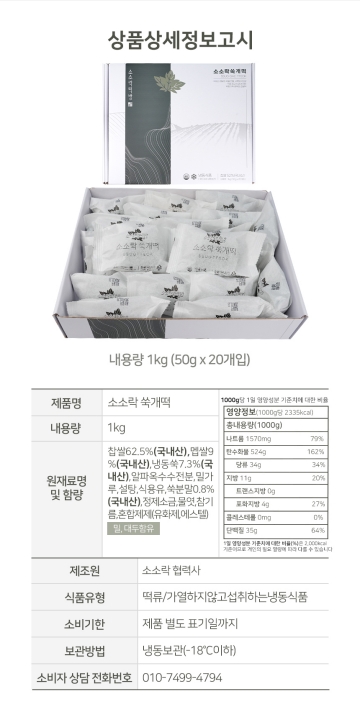 소소락 쑥개떡 1kg (50g 20개입) 외 쑥찹쌀떡/찹쌀떡/영양약밥. 국내산 찹쌀, 해풍쑥, 개별포장.