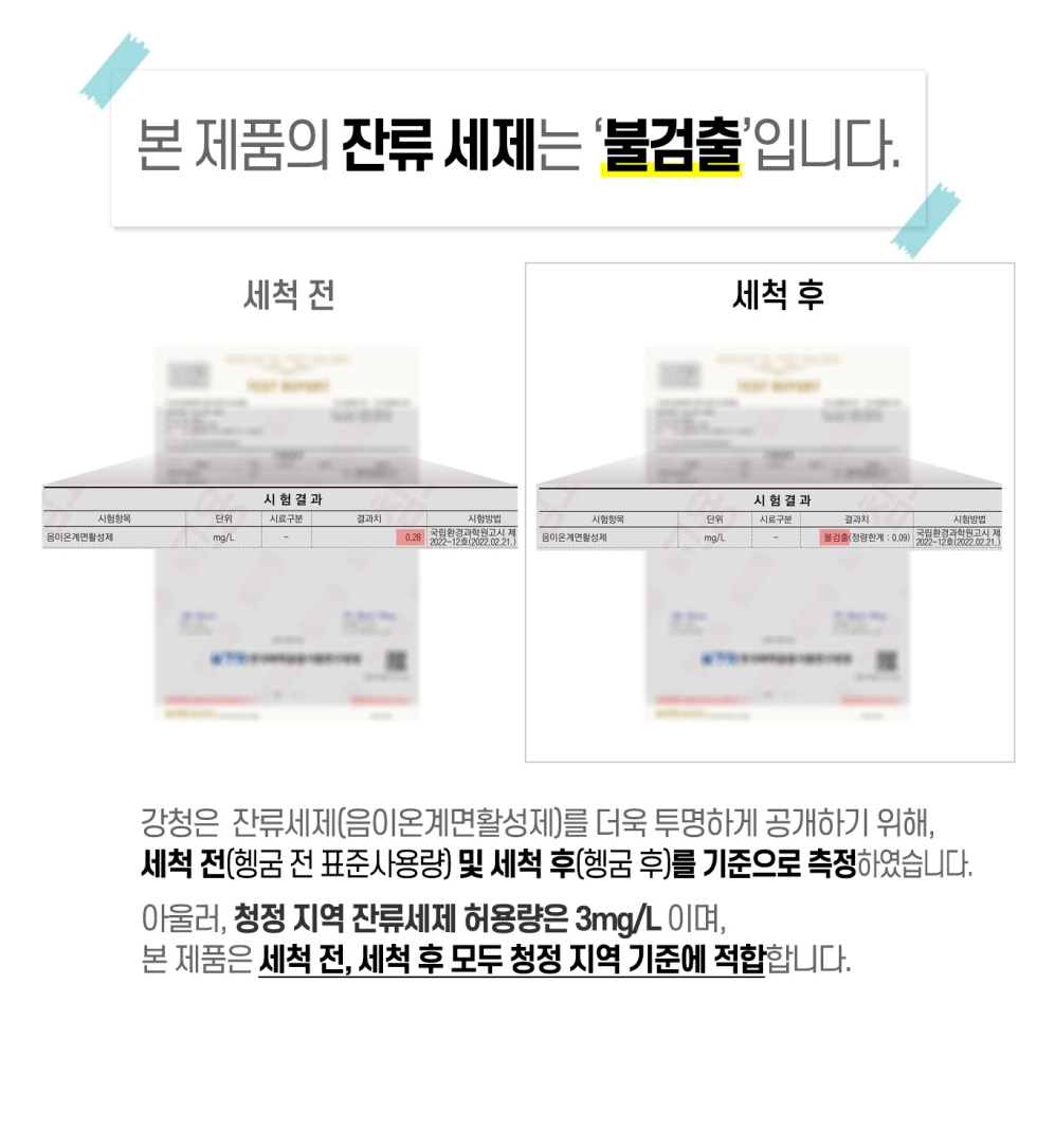 친환경인증 녹색인증 잔류세제 불검출 항균