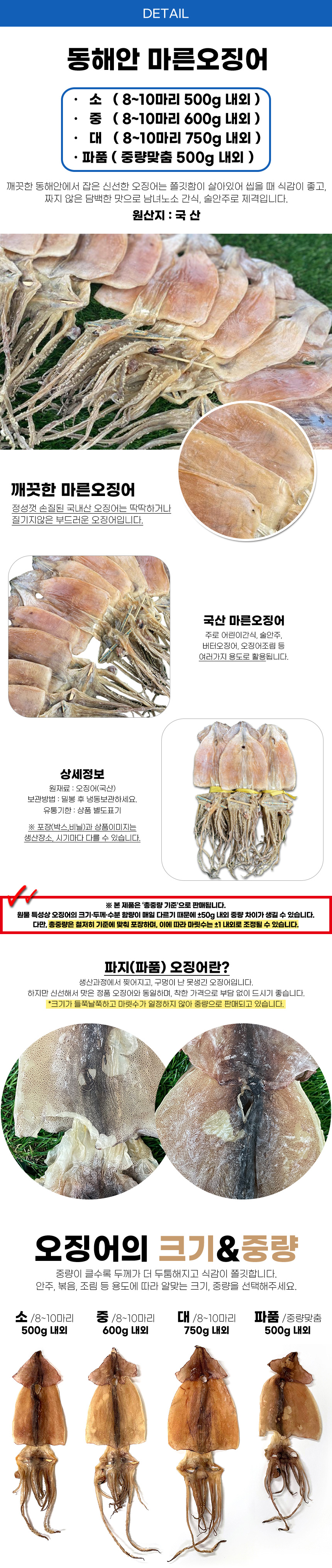 동해안 햇 마른오징어 소,중,대,파품 500g 600g 750g