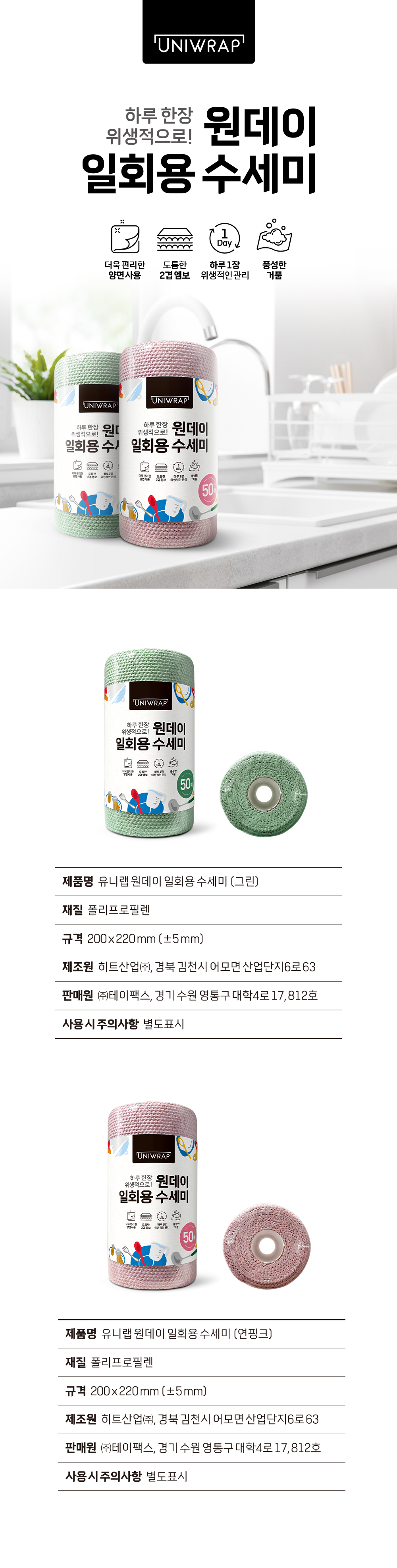 원데이 일회용 수세미 200x220mm 핑크/그린