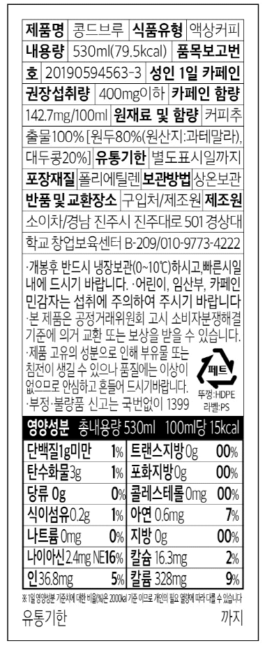 어린이, 임산부, 카페인 민감자는 섭취에 주의하여 주시기 바랍니다.