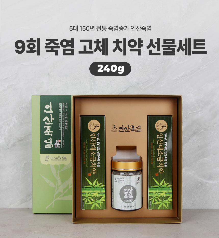 <IMG title="029c240gp2" alt="인산죽염 9회죽염 고체 240g과 대소금치약 2개 세트" src="https://storage010.daousync.com/v1/AUTH_293289d5030f44f4adababac294b365f/image/1743730640795.jpg">